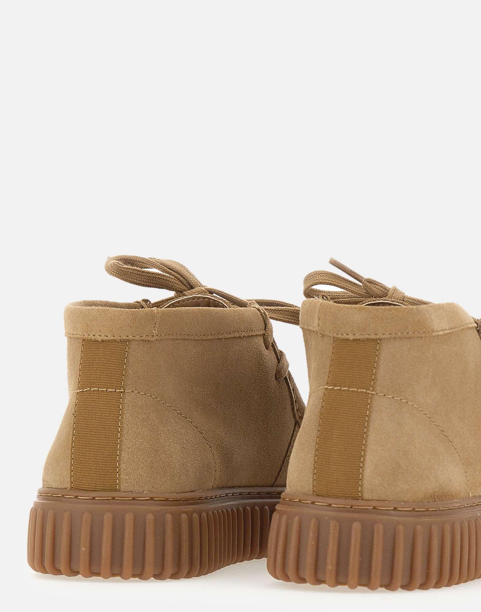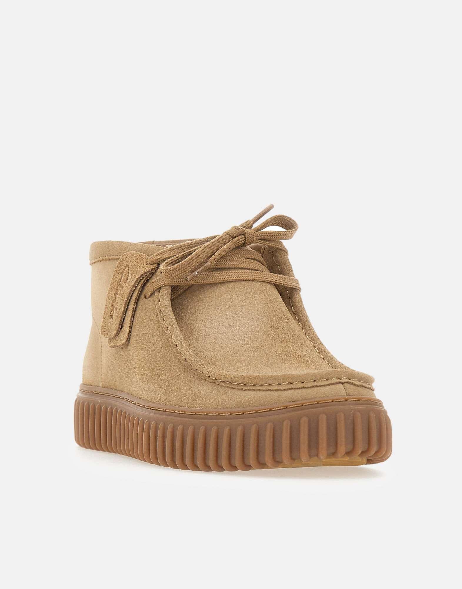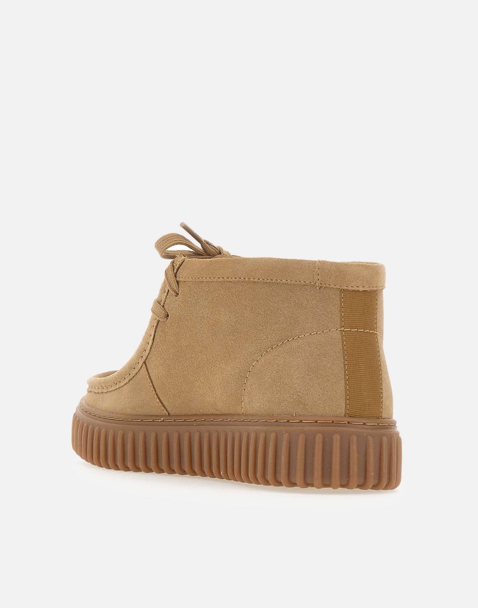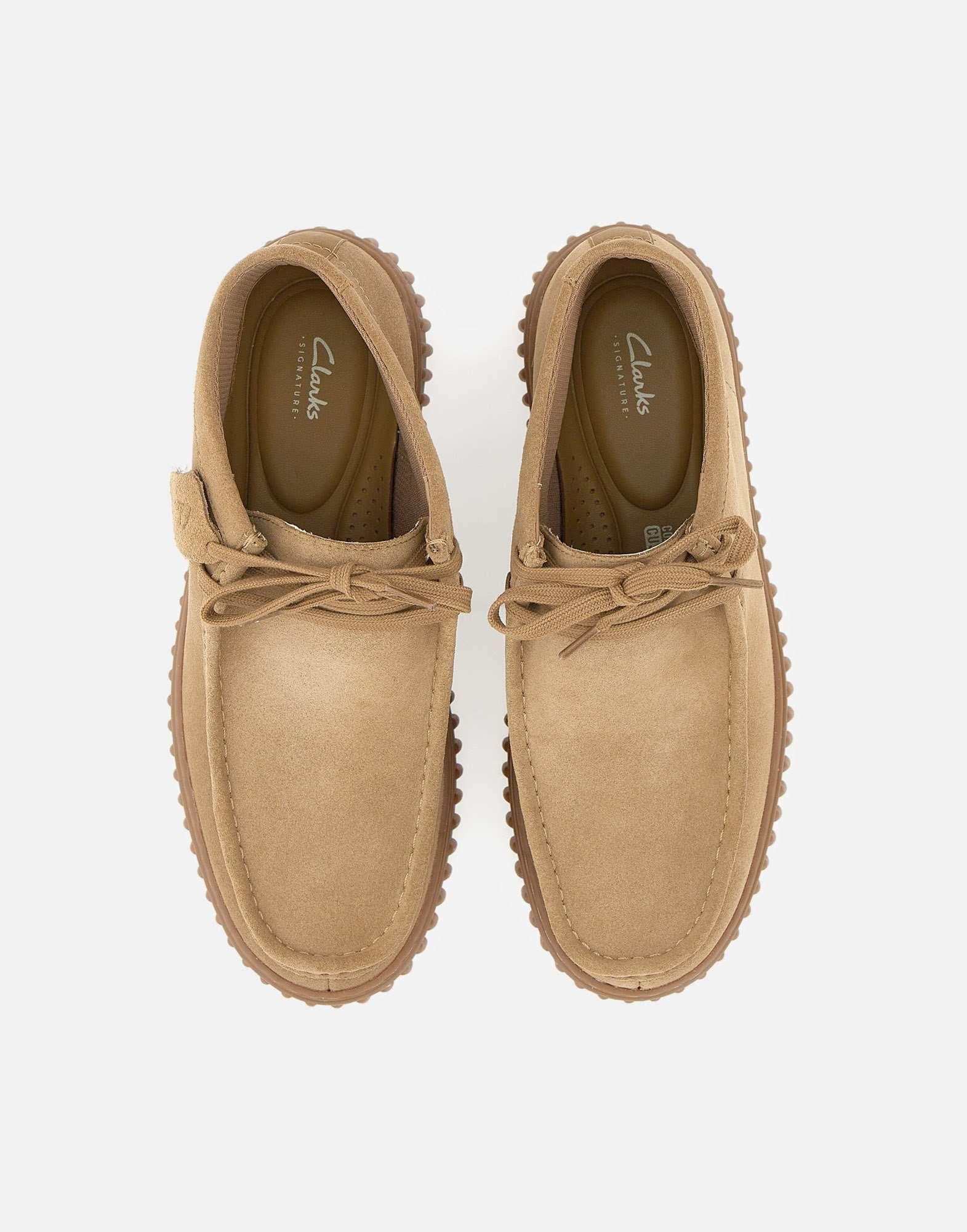The Clarks Torhill Hi, crafted from premium suede in classic dark sand, features a streamlined, lace-up design with flowing, contemporary lines. The upper, paired with a soft, naturally breathable sheepskin lining, ensures maximum comfort all day long. The removable, molded Contour Cushion footbed, made partly from recycled materials, provides anatomical support with every step. The model is completed by a TPR (thermoplastic rubber) outsole, known for its flexibility and grip, and the Clarks and Torhill logos underscore the brand's authenticity and heritage. Regular fit. UK size 9 corresponds to EU 43. Convert your size using the CLARKS MEN'S FOOTWEAR UK size chart.