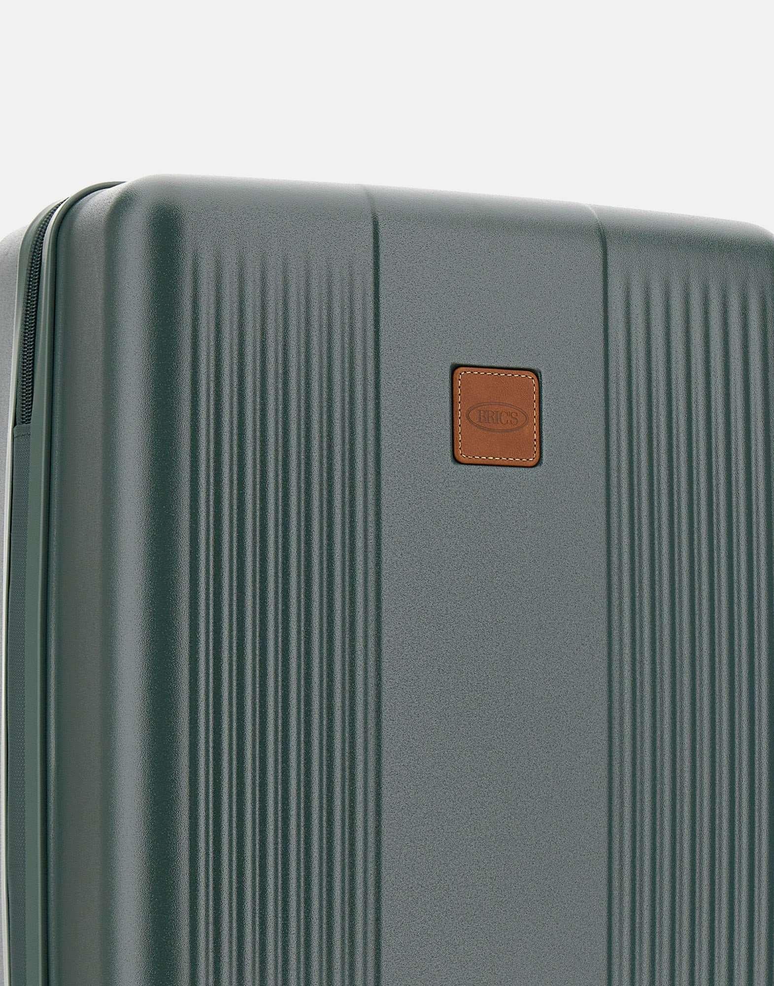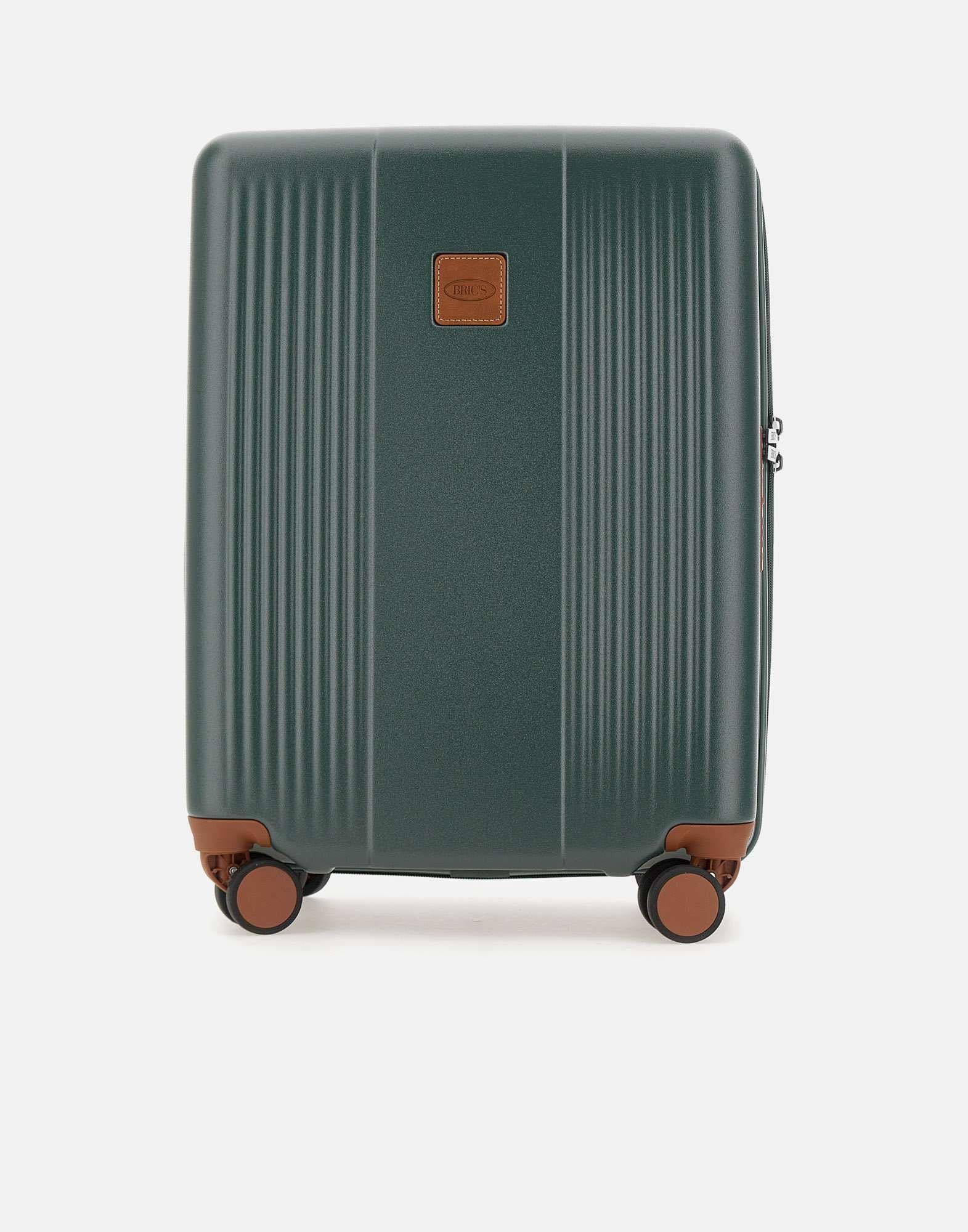 Bric's "Ferrara" cabin trolley, green, made of polycarbonate, light and resistant, opening with double slider zip, integrated TSA padlock, four swivel and recessed wheels to guarantee easy 360° movement, internal pocket with zip, separate internal compartments for help organize your objects, fabric lining, towing system made up of aluminum tubes, multistop, ergonomic handle, details with Bric's logo.