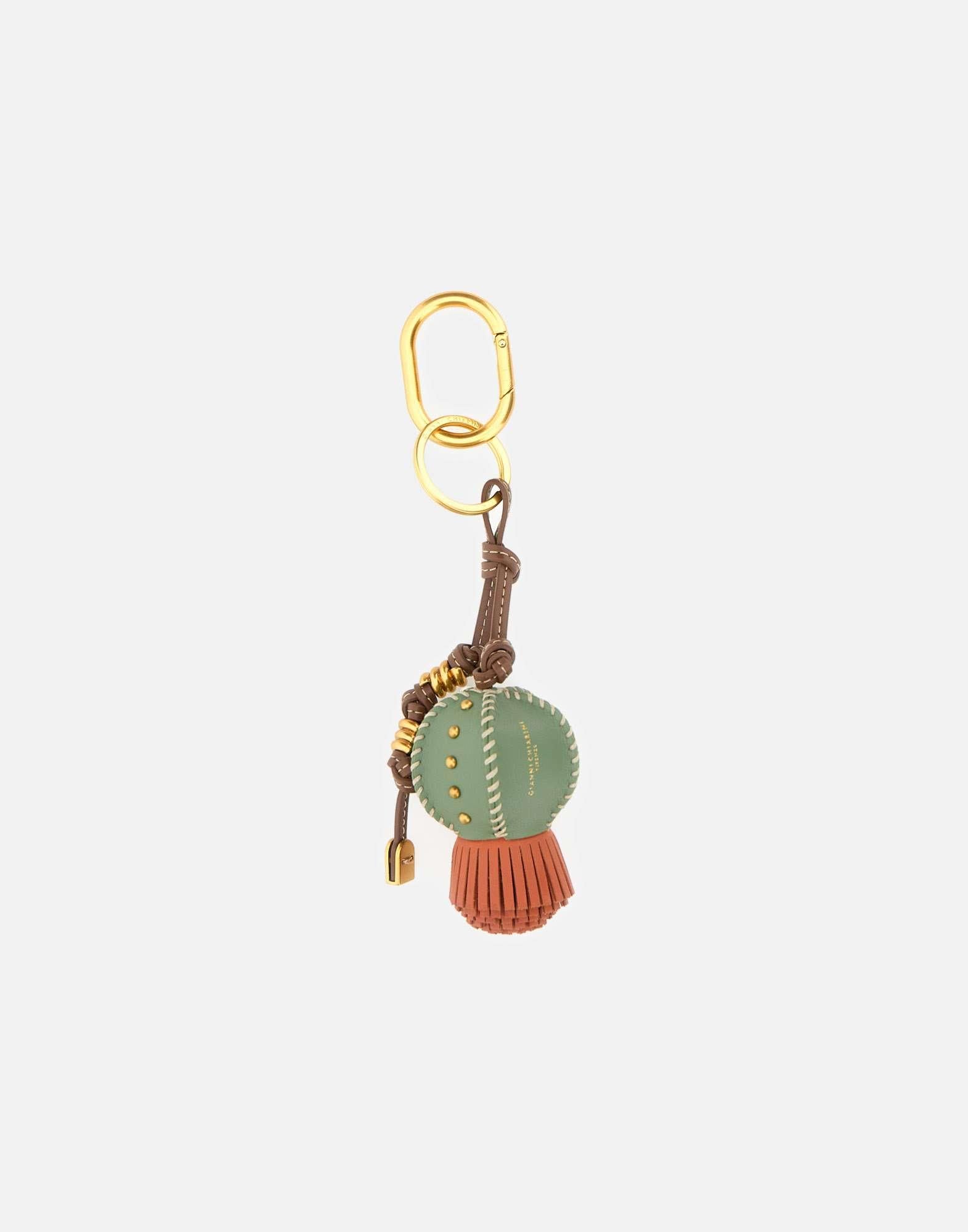 Gianni Chiarini women's "Cactus" key holder crafted from leather, an original decorative accessory designed to add a distinctive touch even to the most minimal looks. The creative, refined design is embellished with small studs that bring character and subtle shine. Finished with a logo-engraved carabiner and knotted details, it is perfect for elevating bags and backpacks with a trendy, bright accent for everyday use. Dimensions: 7x20x5 cm.