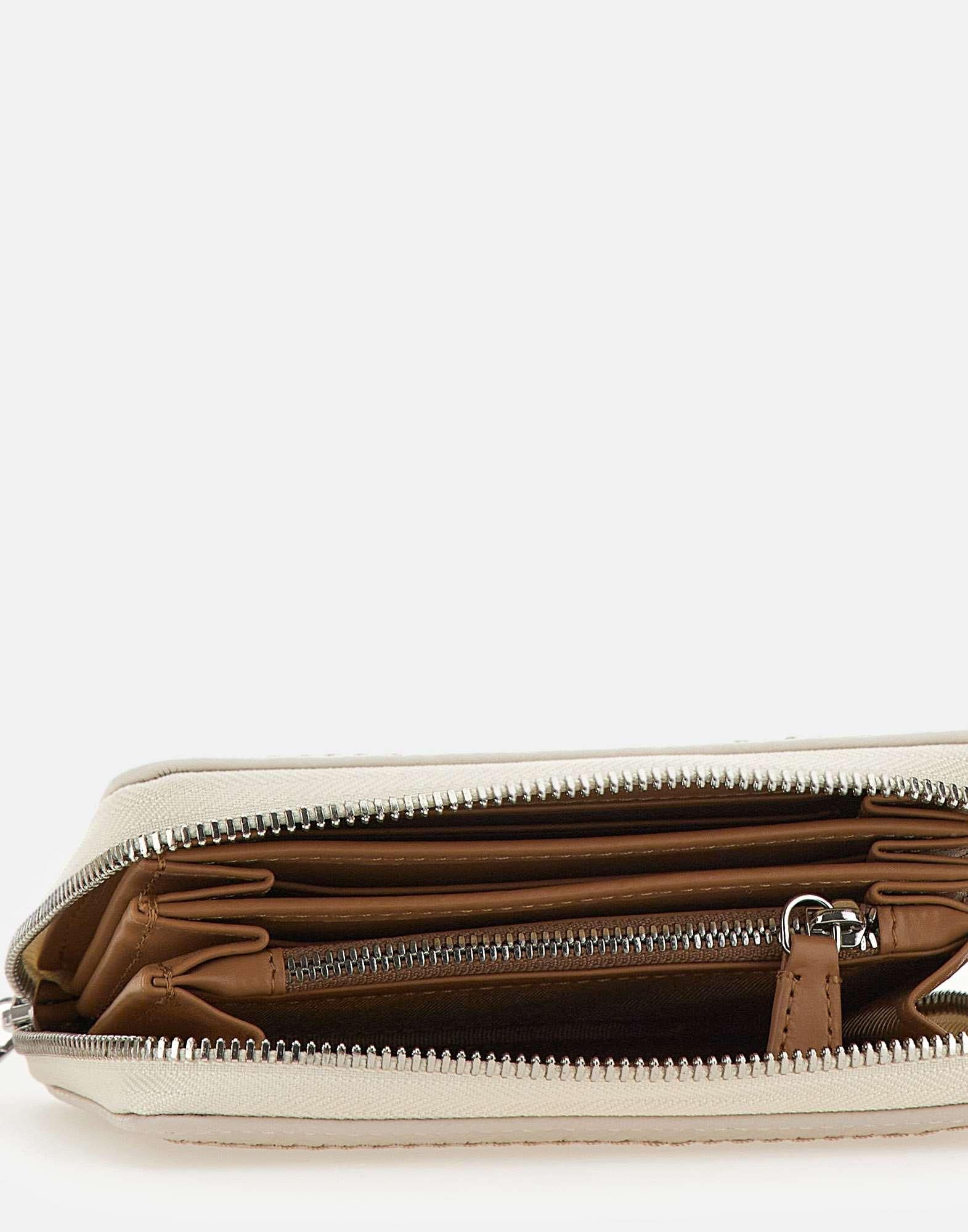Gianni Chiarini women's wallet "Bubble" crafted from maxi-grain leather in cream color, a practical and elegant accessory with a modern attitude. The full zip-around closure keeps contents secure, while a printed exterior logo and contrast stitching enhance the silhouette. Inside, it features multiple card slots, bill compartments and a zip coin pocket for organized storage. Perfect for anyone looking for a functional yet fashion-forward wallet. Size: 15x10,5x3 cm.