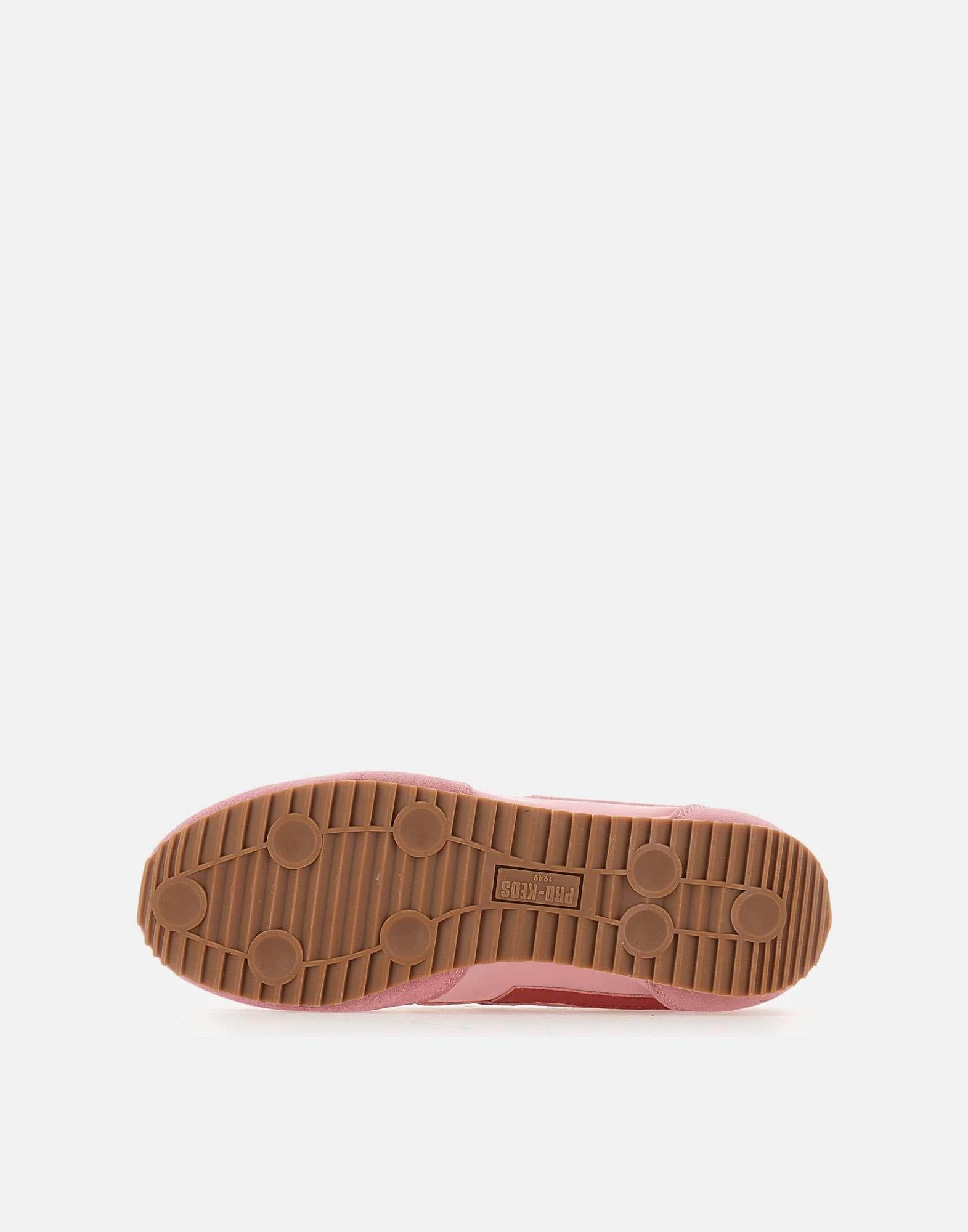 Pro-Keds 1949 "RACER 77" women's sneakers featuring a breathable nylon upper in pink, enriched with matching suede inserts and red leather details. Finished with white flat cotton laces, a logo patch on the tongue, and a branded heel tab for a clean, recognizable look. The 1 cm rubber sole completes an essential design that combines lightness, comfort, and versatility. Inspired by the brand's 1977 T/Racer archive model, the Racer 77 updates the iconic running shoe with a contemporary, lifestyle attitude. Includes a polyester mesh dust bag and additional red laces.