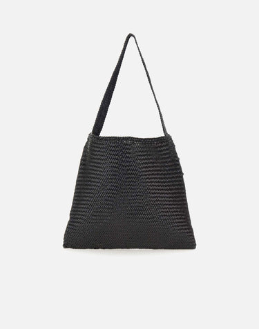 Dragon Diffusion Ars tote shoulder bag, black, calfskin leather, woven texture, top handle, unlined, measurements: Width: 15.35 inches / 39 cm.Length: 14.17 inches / 36 cm.Depth: 0.19 inches / 0.5 cm, dustbag included. On inside of each bag is a hand-stitched pendant depicting an antiqued medal of St. Christopher, homage to patron saint of travellers, brand's seal of authenticity.