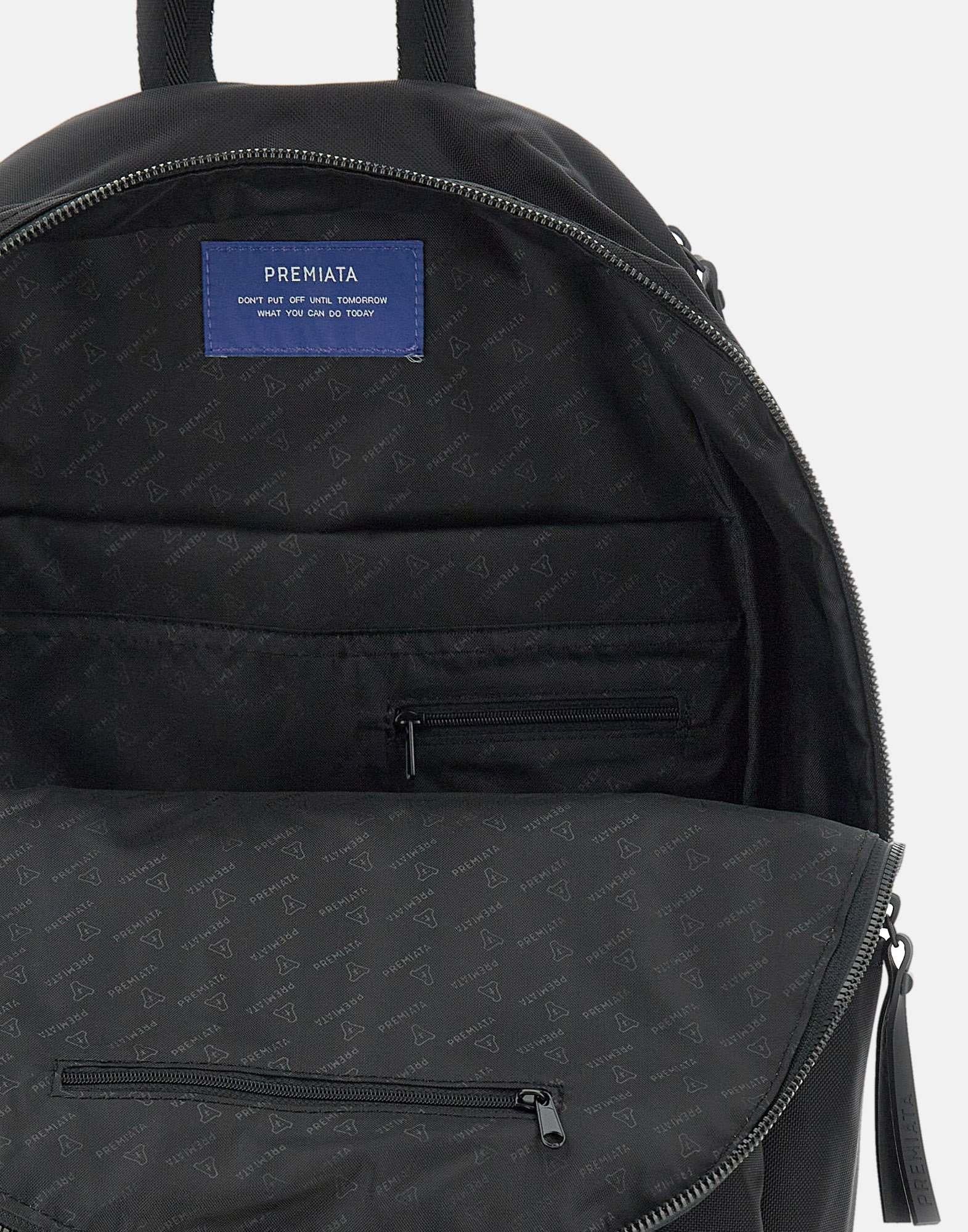 The Premiata "Blade" backpack, a contemporary and highly functional accessory designed for those seeking quality, durability, and urban design. Crafted from premium nylon gabardine, it features a special anti-fray and water-repellent treatment, making it ideal for everyday use in all weather conditions. The deep black color gives the backpack a sleek and modern look. It features EVA-padded shoulder straps for maximum comfort, even on long journeys. The design features a top handle, a front pocket, a side pocket, and a large main compartment with a two-way zip, perfect for organizing personal items, a laptop, or documents. Dimensions: 42x28x13 cm