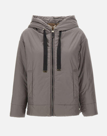 Max Mara The Cube "Daria" jacket, gray, water-repellent canvas, hood with drawstring, Cameluxe quilting, straight fit, zip closure with leather slider and metal monogram, side welt pockets, side slits with snap buttons to adjust fit, regular fit. Professional wash