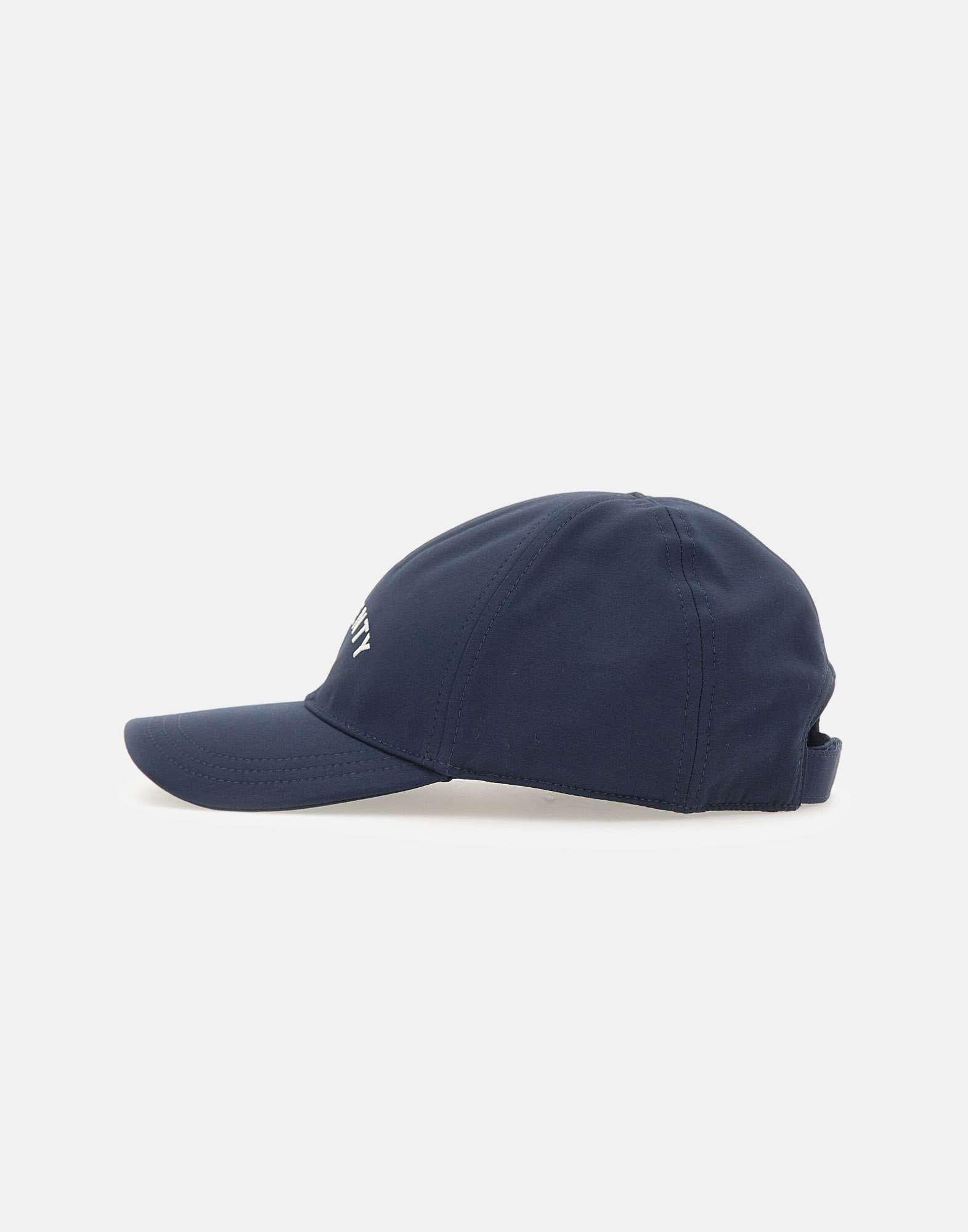 Men's Eleventy baseball cap crafted from blue cotton, designed with a clean and contemporary aesthetic. Features a structured visor and an adjustable back strap with velcro for a customized fit. Finished with a white contrast logo print on the front and a customizable label inside. A versatile accessory, perfect for casual and refined everyday looks. Made in Italy.