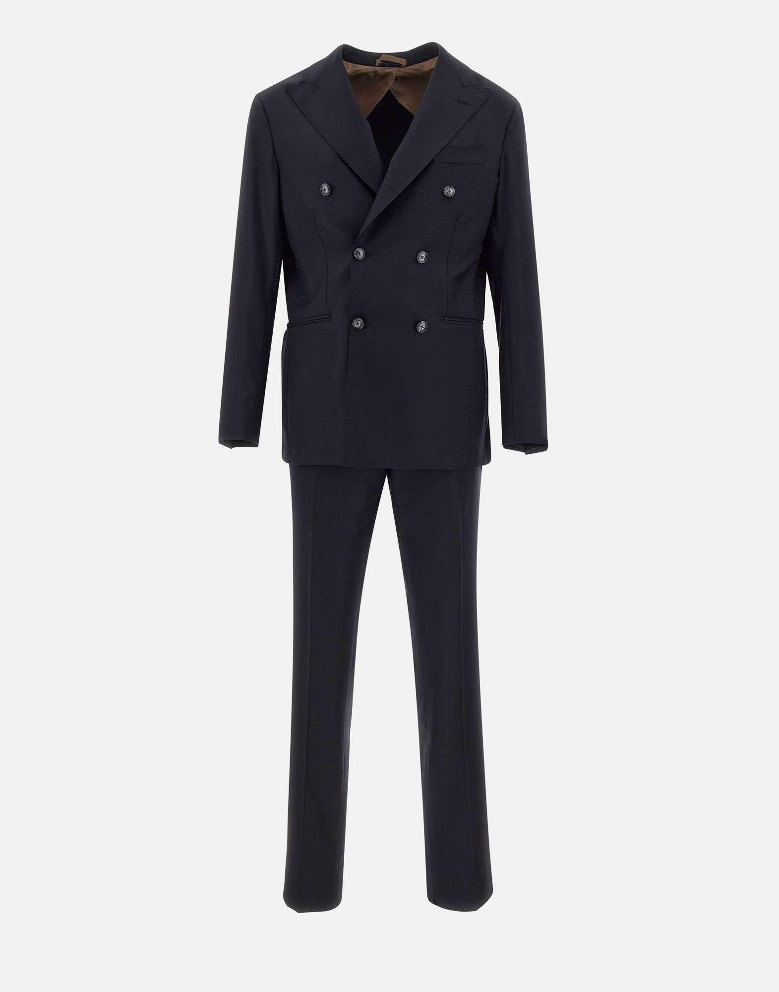 Barba men's virgin wool two-piece suit, navy blue, Loro Piana fabric.