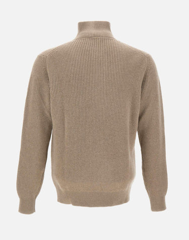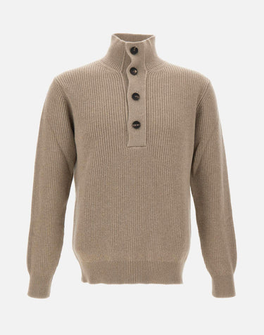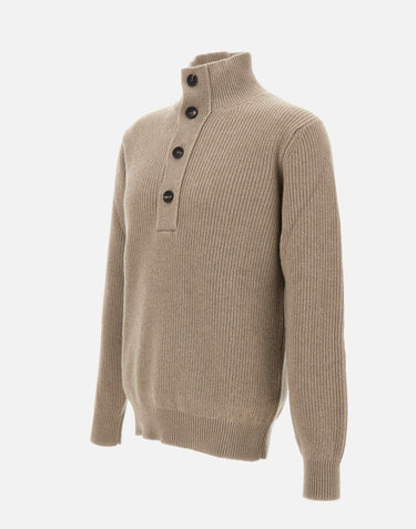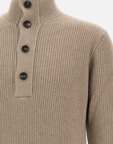 Filippo De Laurentiis men's Aztec silver superfine wool and cashmere knit turtleneck sweater, long sleeves, stand-up collar, half-closure with horn buttons, ribbed edges, regular fit, made in Italy