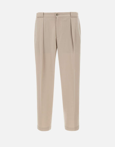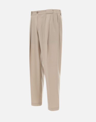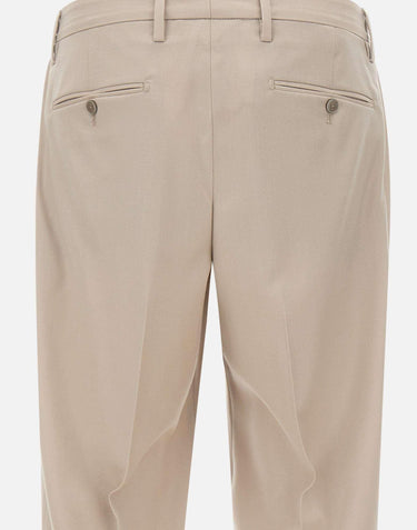 Briglia 1949 "PortobelloS" men's ecrù color wool and cashmere trousers, Luxury Fabric Collection, “Racconta la Sartoria” line, regular waist, partially elasticated with belt loops, zip and matching logo button fastening, side welt pockets, double front darts, back pockets with logo buttons, regular easy fit. Hem: 18 cm. Hand wash. Made in Italy.