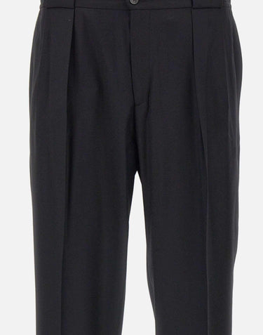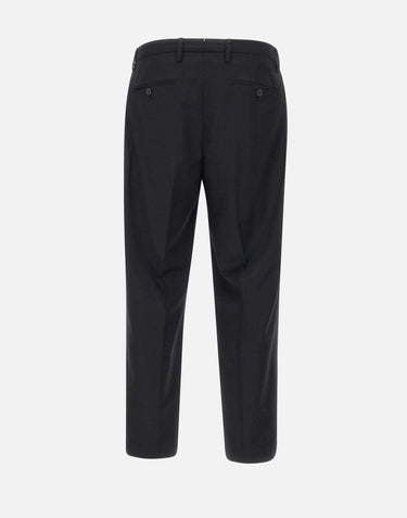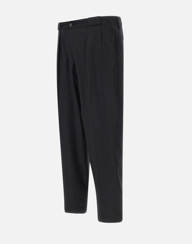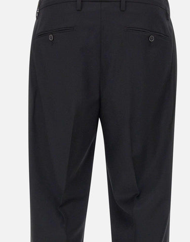 Briglia 1949 "PortobelloS" men's black wool and cashmere trousers, Luxury Fabric Collection, Racconta la Sartoria line, regular waist, partially elasticated with belt loops, zip and matching logo button fastening, side welt pockets, double front darts, back pockets with logo buttons, regular easy fit. Hem: 18 cm. Hand wash. Made in Italy.