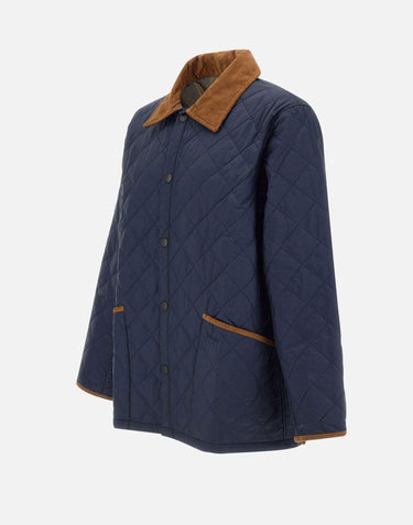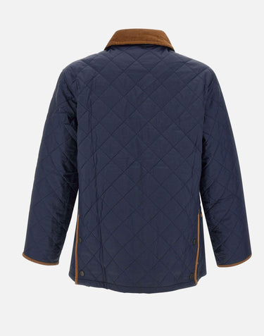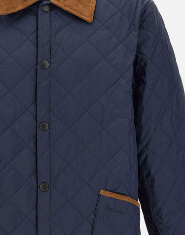 Barbour 30th Anniversary "Liddesdale quilted" men's down jacket, blue, classic style, characteristic diamond quilting, contrasting brown corduroy collar, closure with logoed snap buttons, resistant, light and protective nylon interior, two pockets on front with embroidered logo, ideal for autumn and winter seasons. Regular fit.