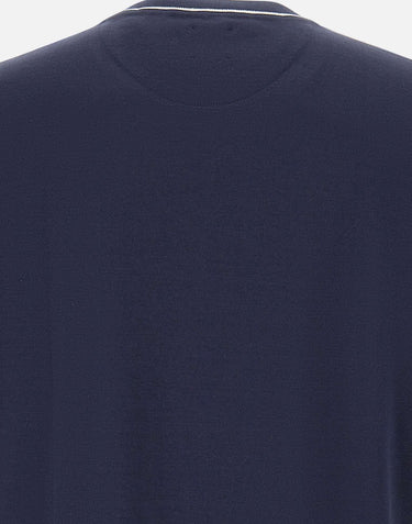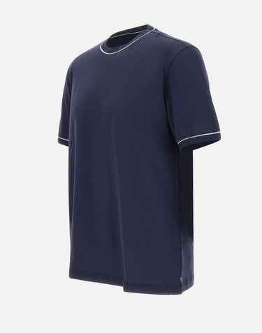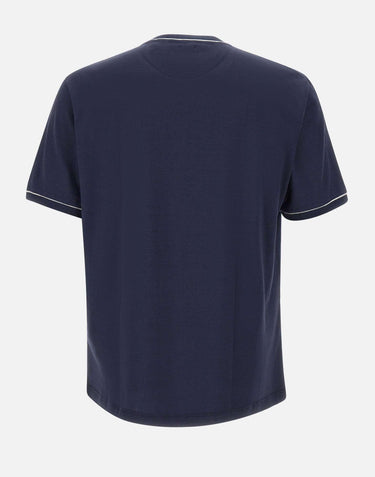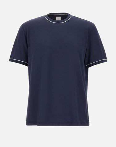 Eleventy men's cotton jersey t-shirt, blue, short sleeves, crew neck, ribbed edges and contrasting color, regular fit, made in Italy