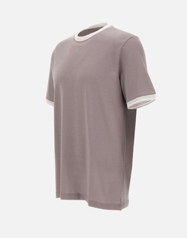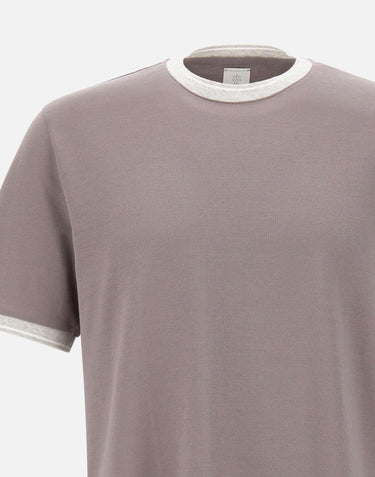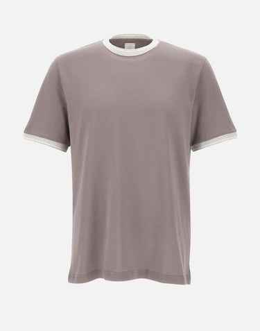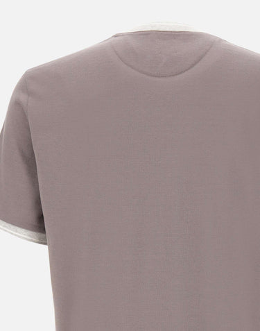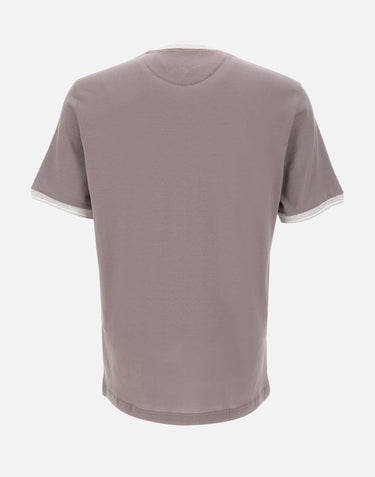 Eleventy men's mud color Giza cotton jersey t-shirt, crew neck, short sleeves, ribbed knit edges and contrasting color, regular fit. Delicate wash max 30°.