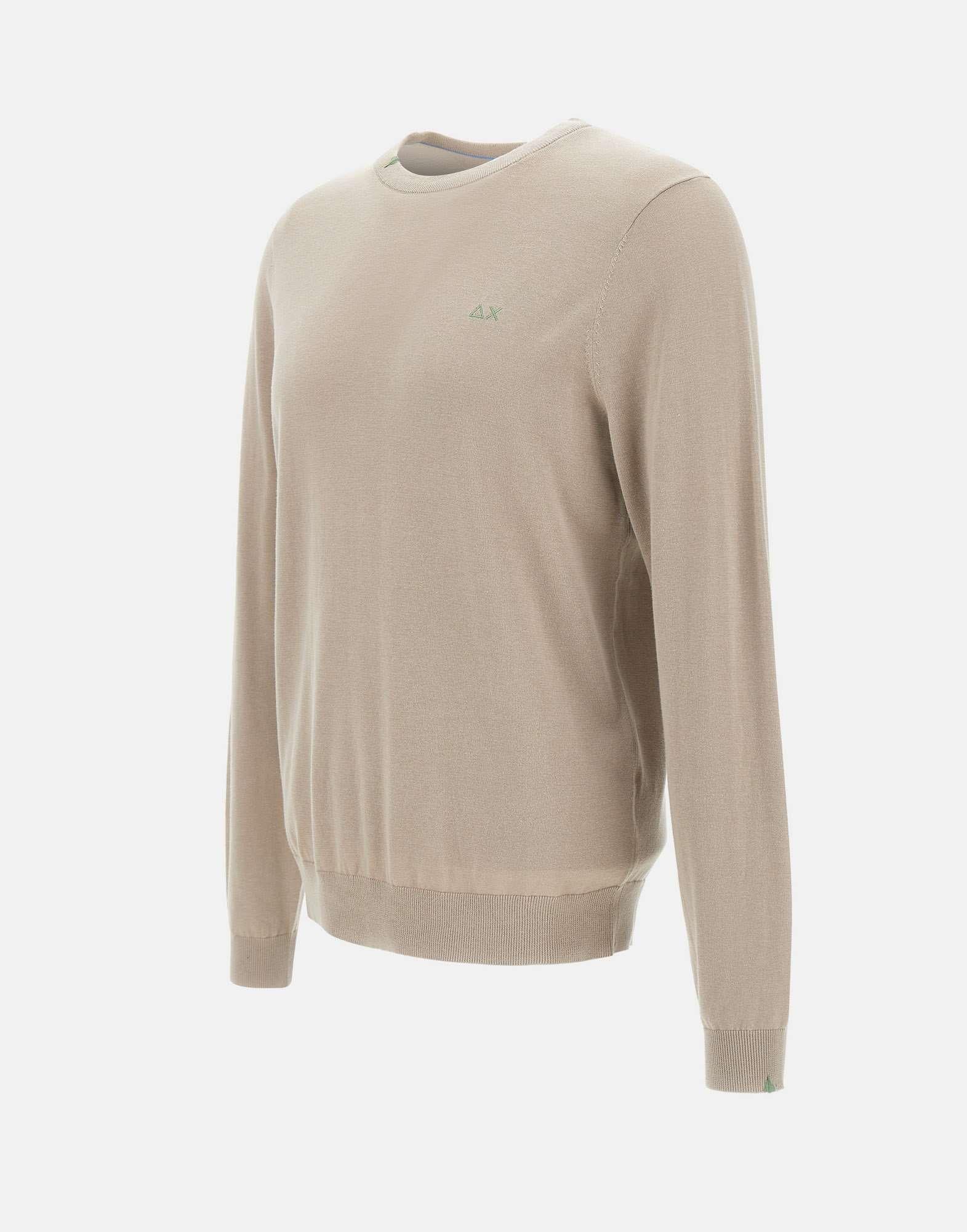 Cotton "Sweater basic" men Sun68, greige, long sleeves, crew neck, ribbed edges, embroidered logo on the chest, regular fit