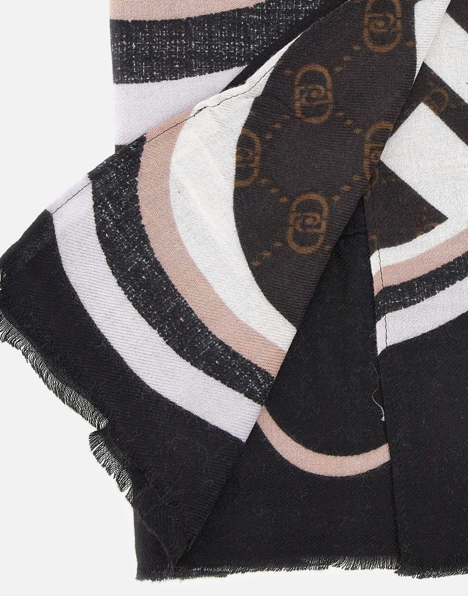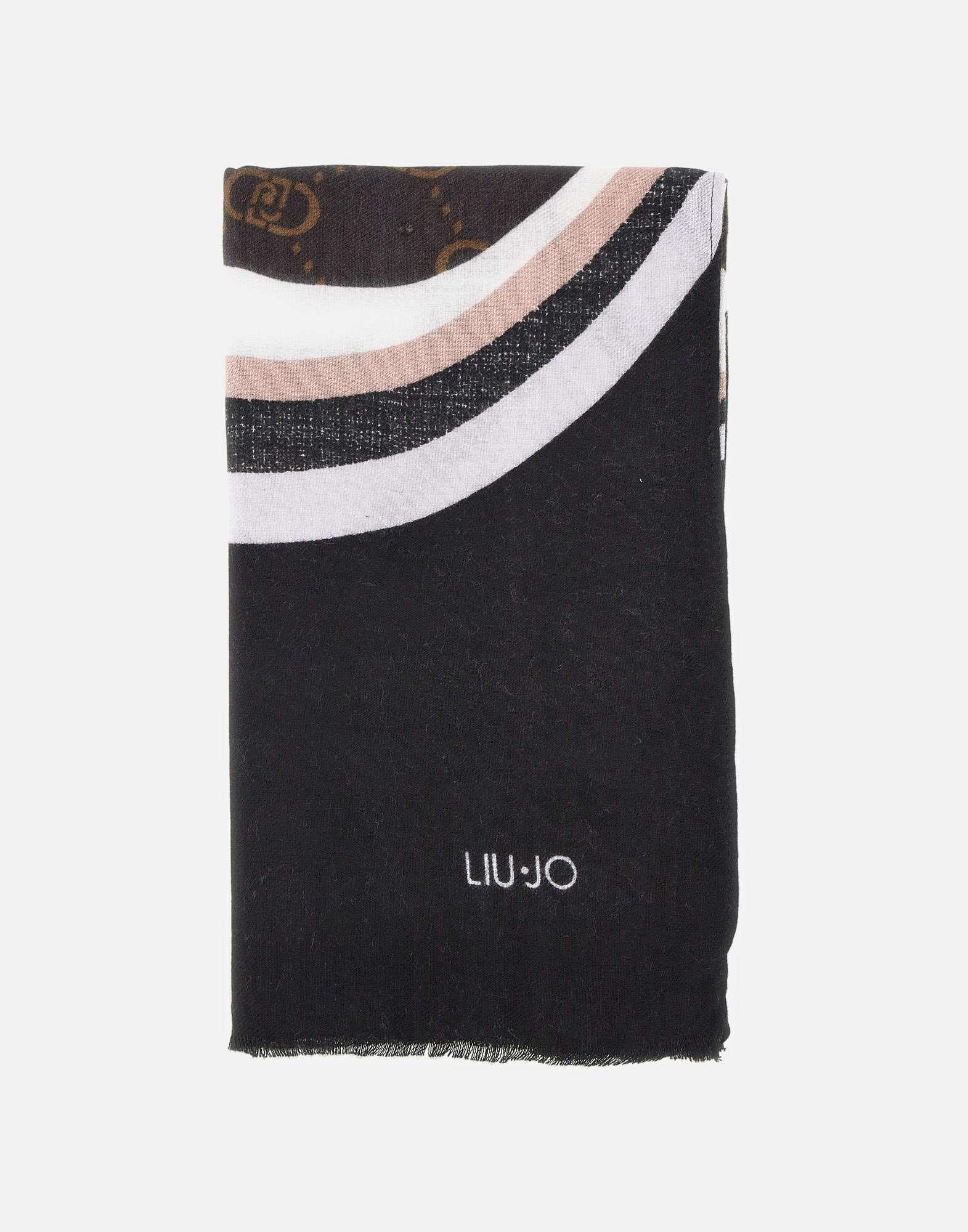 Liu-Jo viscose stole in shades of black, featuring an all-over logo print and frayed edges for a refined yet casual touch. Comes with a matching logo pouch, perfect for elegant storage. Dimensions: 70 x 180 cm. A versatile accessory ideal for completing everyday and refined looks.