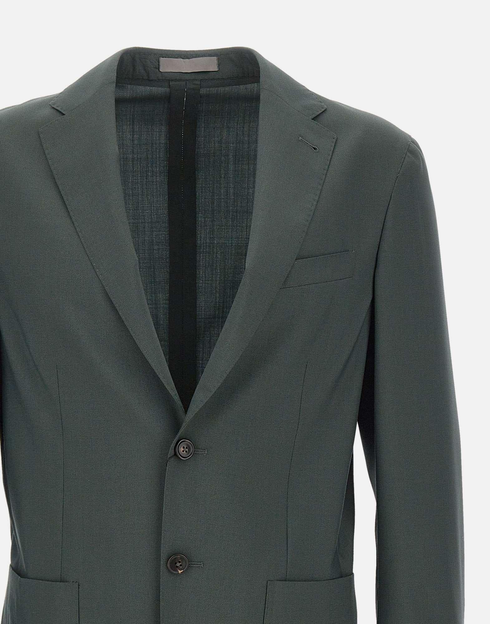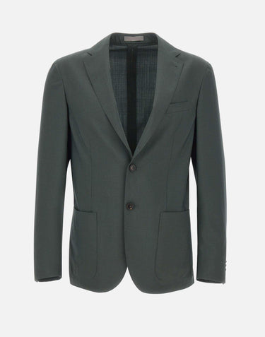 Corneliani "Whisper" blazer crafted in a dark green wool and silk blend, a refined piece that reinterprets the contemporary men's wardrobe with timeless elegance. This single-breasted two-button style features notched lapels, a welt chest pocket and patch side pockets, creating a classic and sophisticated silhouette. Double back vents and cuffs finished with 4 buttons add tailored detail to the design. The comfort fit allows natural ease of movement, combining traditional elegance with a dynamic and modern approach to menswear.