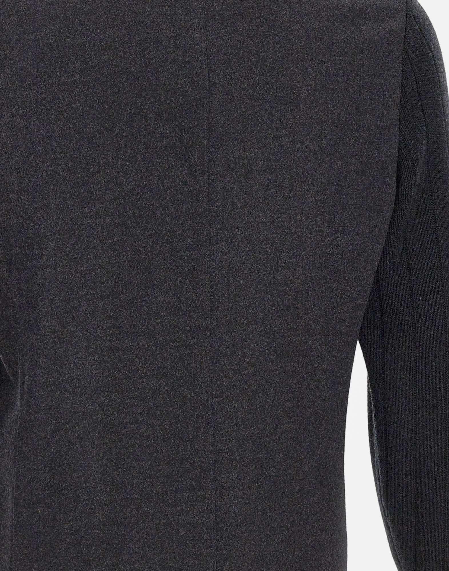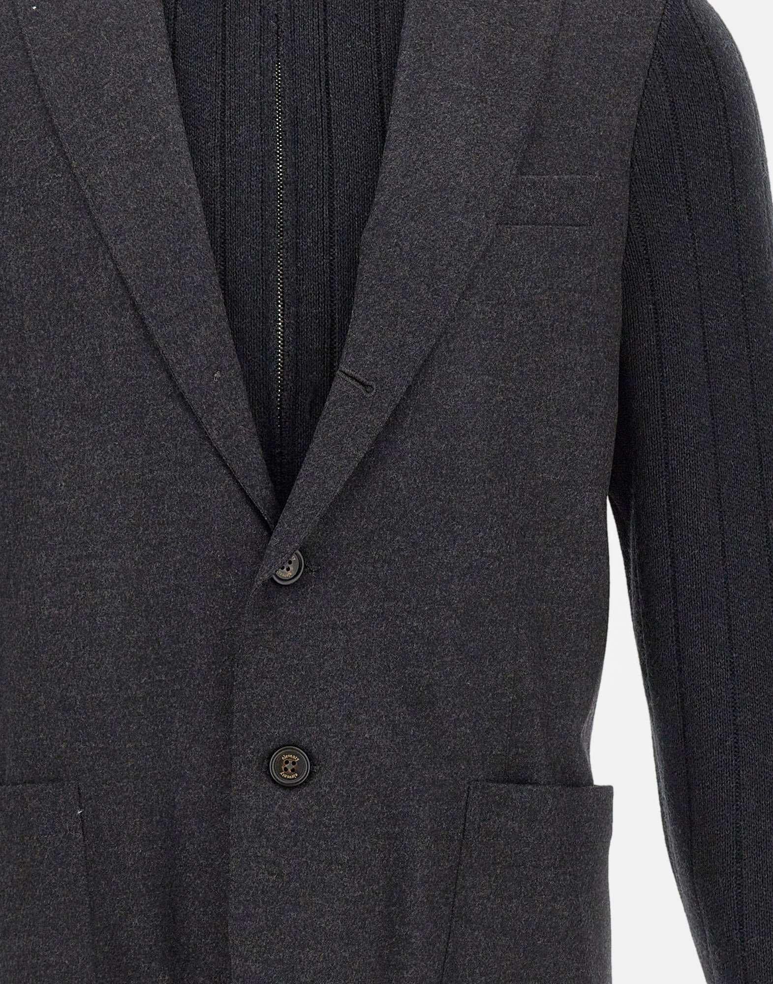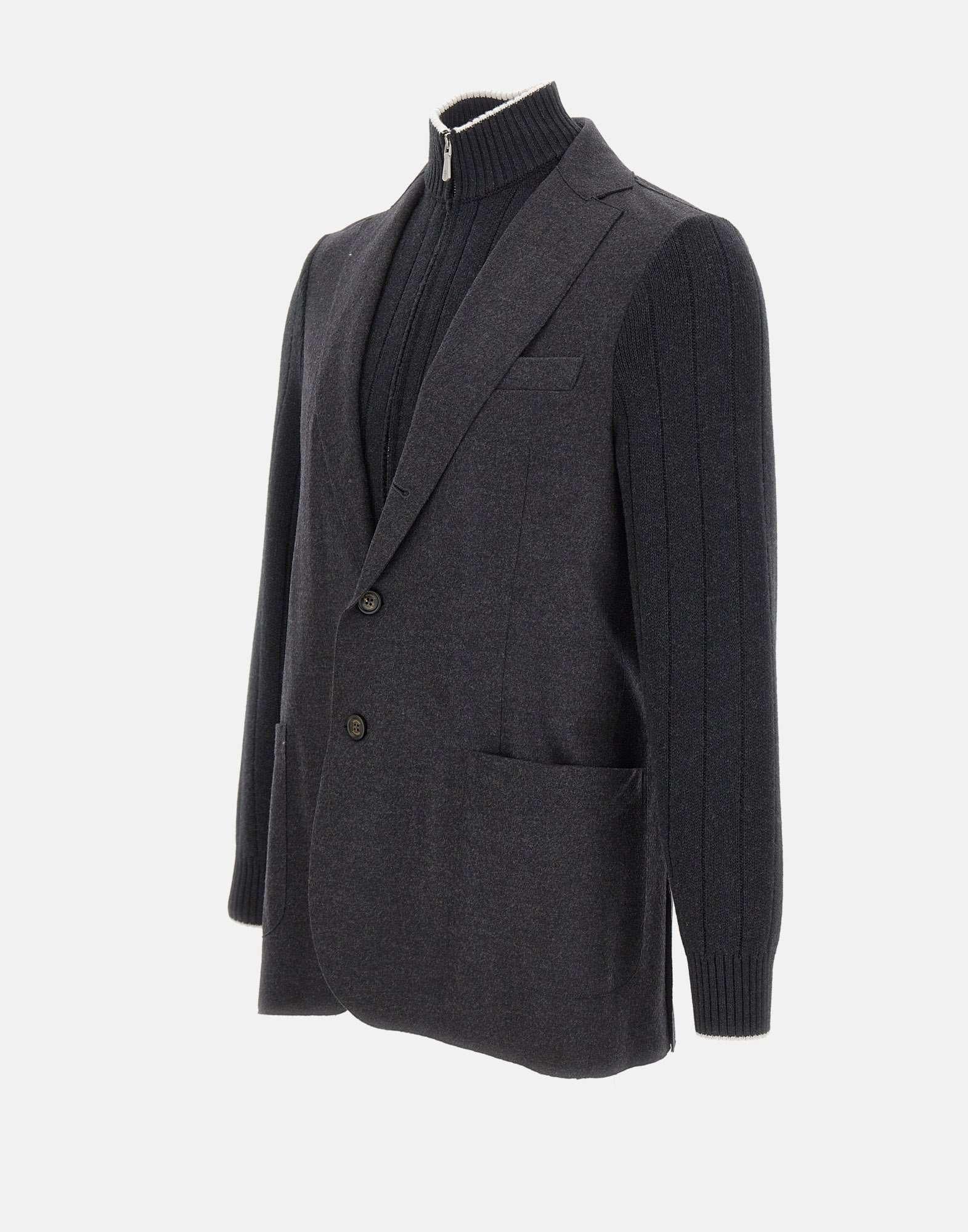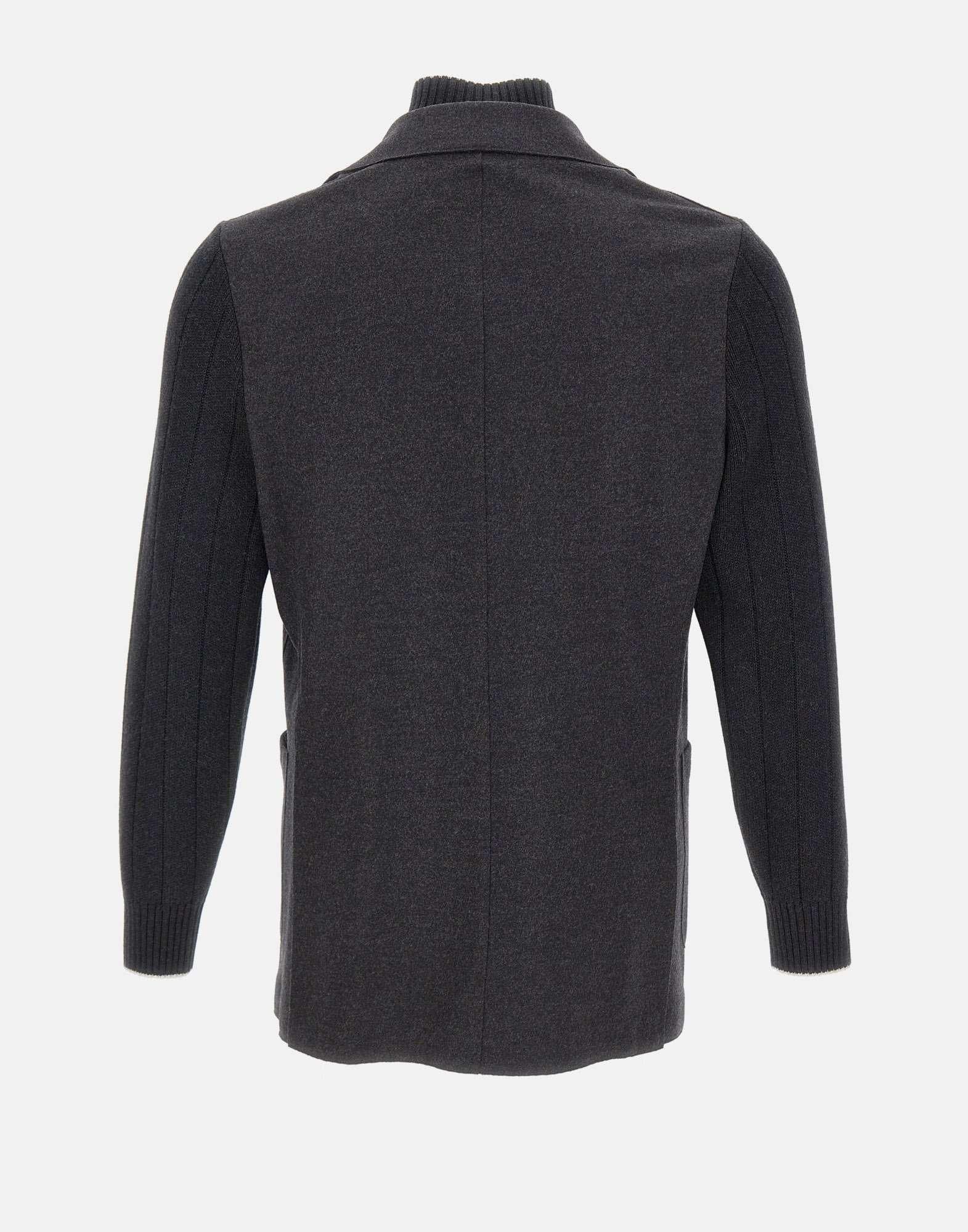 Eleventy men's dark grey wool jacket with a blazer construction and ribbed knit details on the inside and sleeves. A high collar, narrow lapels, and a zip and button combination closure create a sophisticated and contemporary look. Featuring front pockets, a pocket square, and ribbed edges. Regular fit. Handcrafted in Italy.