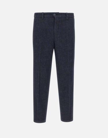 Briglia 1949 "Portofino" men's jeans dark blue denim, part of the DNM Collection. They feature a partially elasticated waistband with belt loops, a branded button and zip fastening, classic front pockets, and back welt pockets with buttons. The 17 cm hem enhances the regular fit, creating a modern and versatile silhouette. The model has a relaxed fit with wide legs. A refined everyday denim piece with a contemporary edge. Made in Italy.