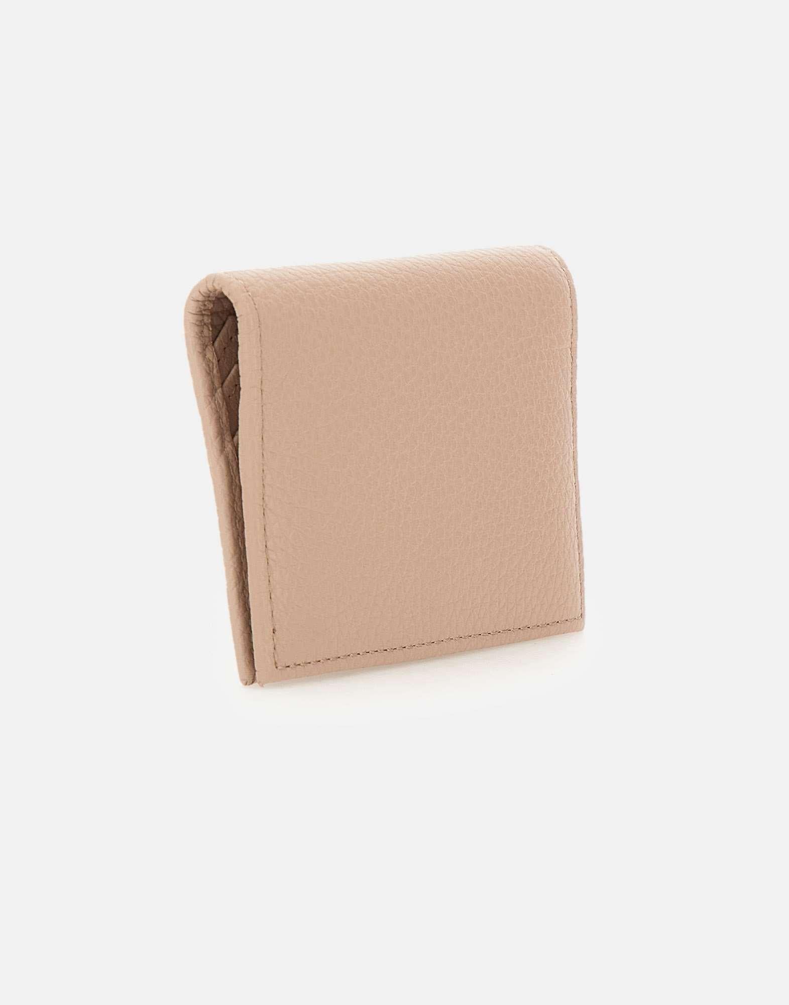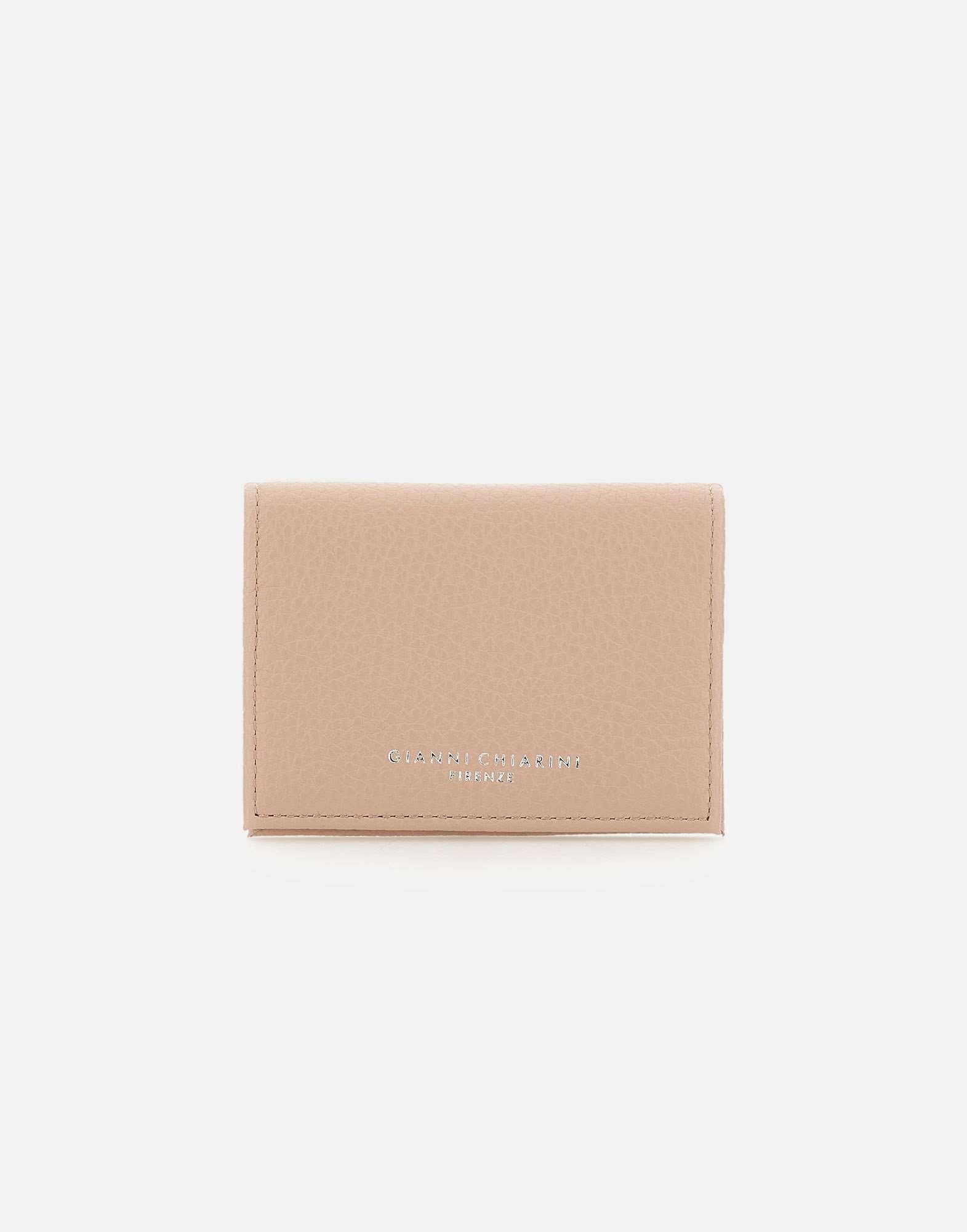 Gianni Chiarini women's card holder "Dollaro" crafted from nude color pebbled leather, a compact accessory designed to keep cards neatly organized. The snap button opening ensures everyday practicality, while multiple card slots offer functional storage. A black printed logo on the outside adds a modern contrast detail. Size: 10.5x8x1.5 cm.