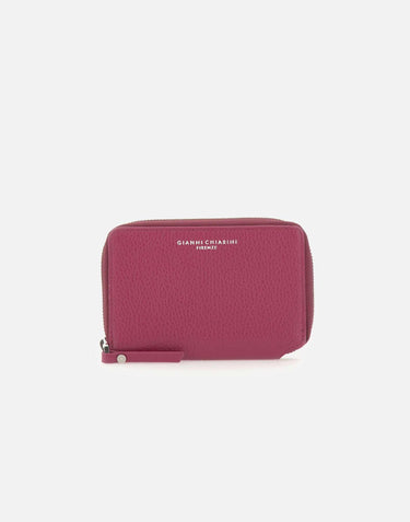 Gianni Chiarini women's wallet "Dollaro" crafted from soft fuchsia pebbled leather, an everyday essential designed for perfect organization. The zip-around closure keeps contents secure, while a printed exterior logo adds a discreet signature touch. Inside, it features multiple card slots, a bill compartment and a zip coin pocket for practical storage. Size: 14x9.5x2 cm.