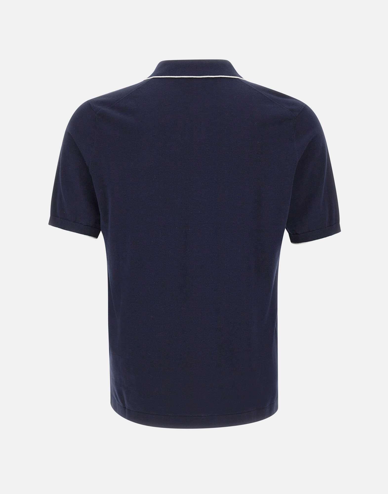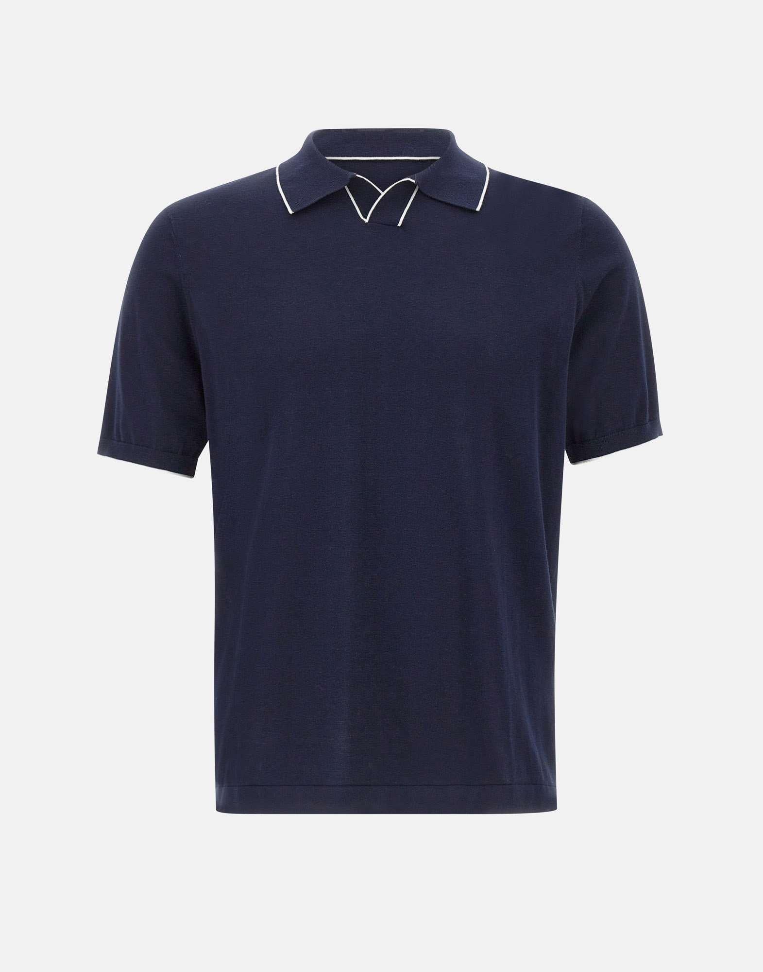 Kangra men's polo shirt in navy cotton, designed for a clean, versatile casual and smart casual wardrobe. The short-sleeve regular fit style features decorative white contrast piping that sharpens the silhouette, a ribbed collar, and ribbed hem with side slits for added comfort and ease of movement. A breathable cotton polo ideal for warmer days and effortless styling.