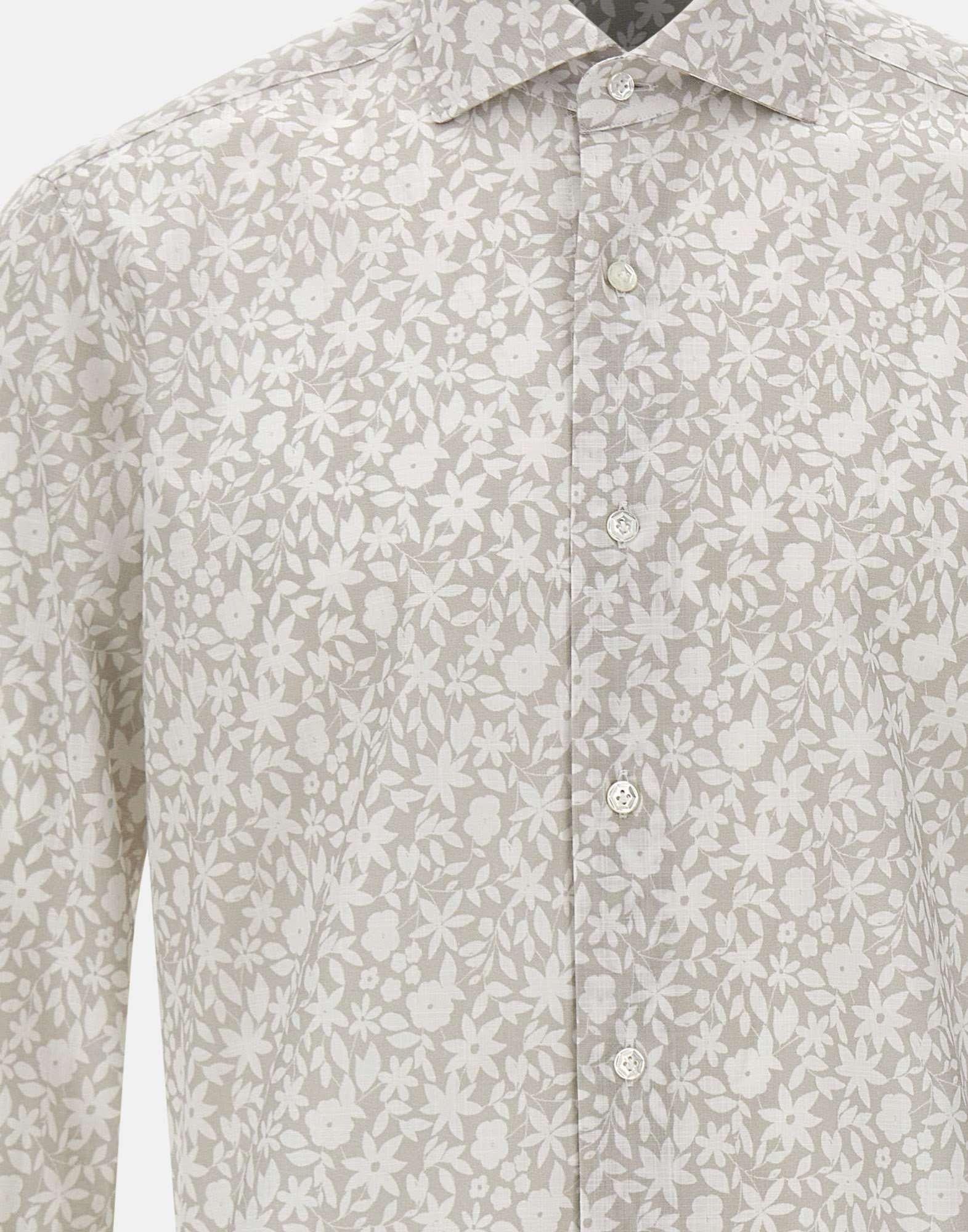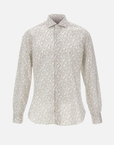 Barba men's shirt crafted from cotton with a grey and white floral pattern, part of the Dandy Life line inspired by vintage shirts with a worn-in look, achieved through intense dyeing or washing processes. The design remains clean and versatile with a classic collar, double button cuffs and a rounded hem, reflecting a contemporary tailored attitude. The regular fit ensures comfort and easy styling, making this shirt ideal for refined casual looks. Made in Italy.