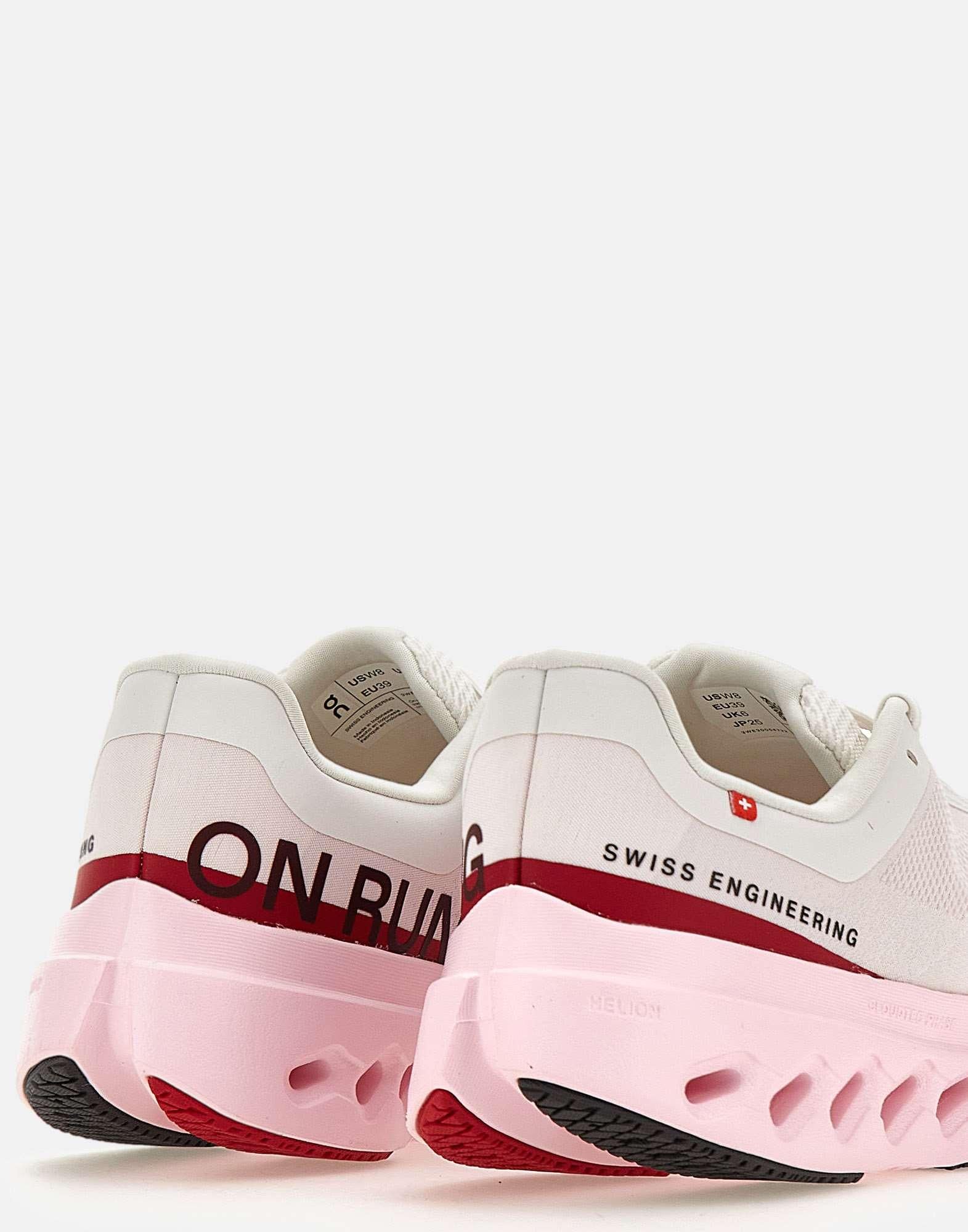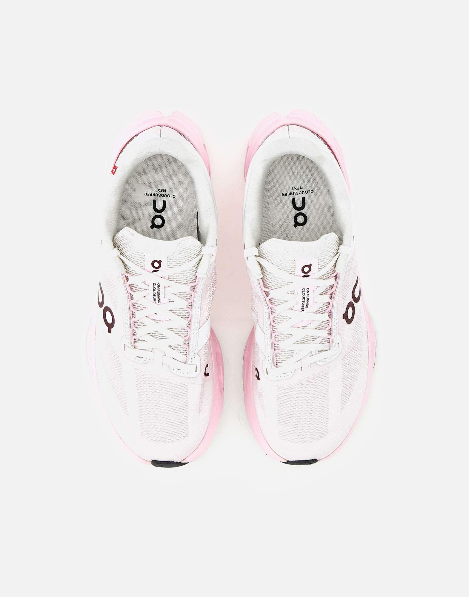 On women's sneakers "Cloudsurfer Next" feature an ultra-light pink mesh upper, highly breathable and designed to wrap the foot for all-day comfort. The outsole includes anti-slip elements for reliable grip, while CloudTec Phase cushioning delivers a smooth ride. Helion foam adds responsiveness and energy to every stride. The silhouette is inspired by top race shoes, finished with a 5 cm outsole in contrasting baby pink. A comfortable fit that adapts to different foot shapes. Weight: 225 g. Regular fit.