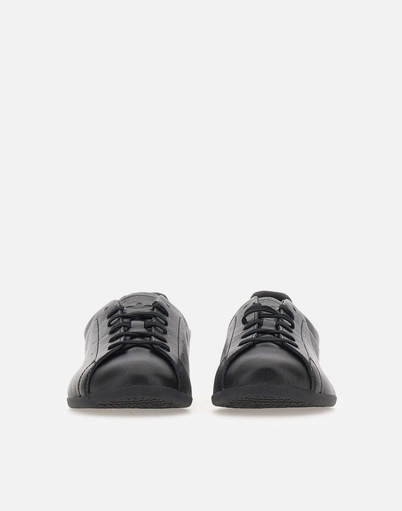 Adidas women's sneakers "Stan Smith Lo Pro" with a smooth black leather upper, soft yet durable for everyday wear. The low-profile silhouette reworks the Stan Smith icon, keeping its signature simplicity while adding a distinctive touch. A shaped insole and a durable rubber outsole measuring 0.5 cm provide comfort and traction with every step. Embossed logo on the heel tab and tongue, finished with flat black laces.