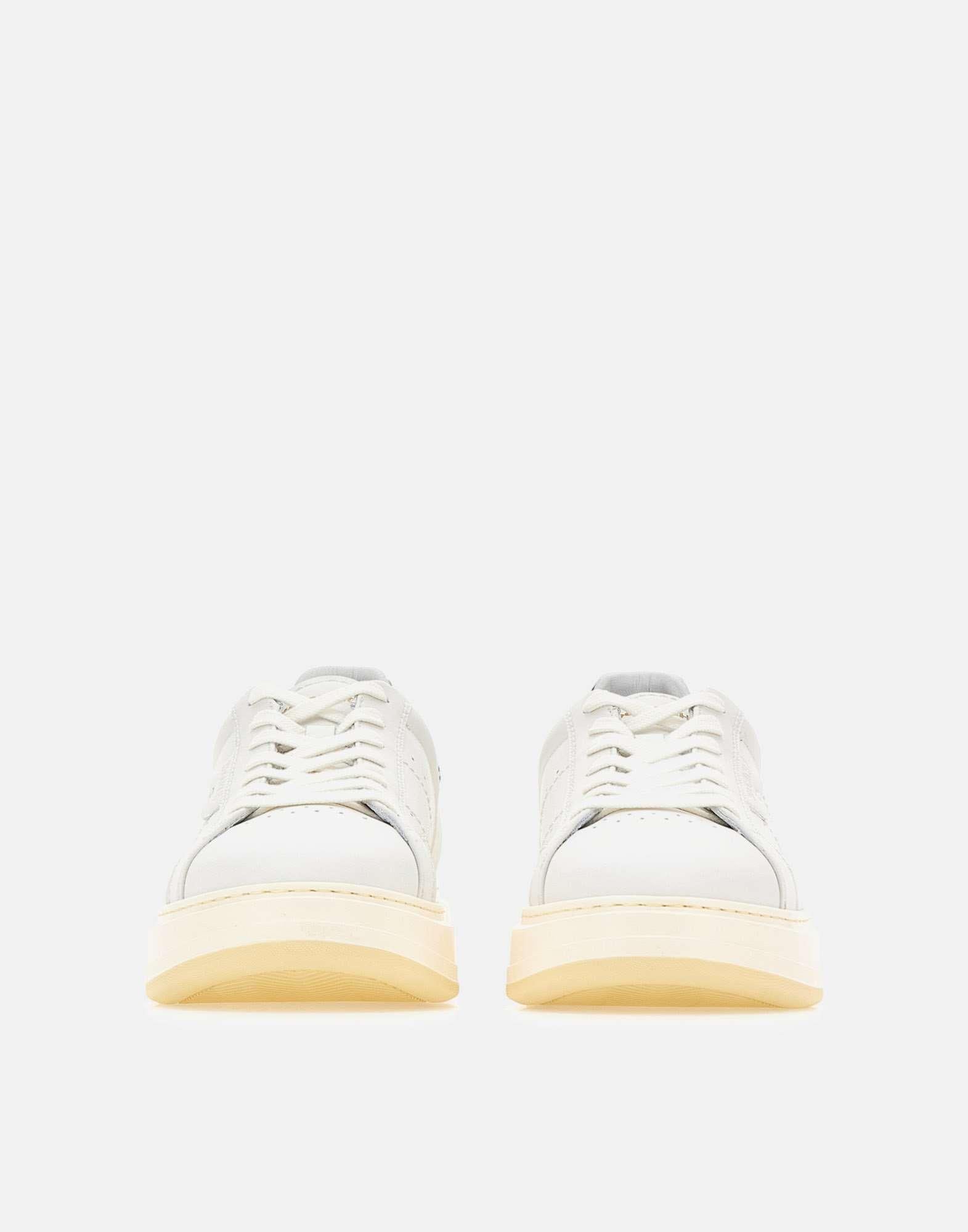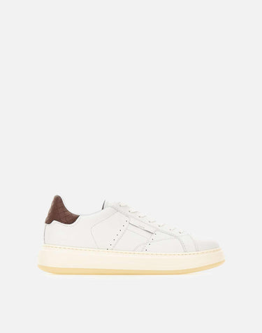 Woolrich "Arrow" men's sneakers crafted in white leather, defined by a dynamic and contemporary design. The style features a brown back patch with woven-effect print, hand-stitched side details, a gold logo on the tongue and a heat-stamped logo on the side, elements that enrich the upper with a distinctive and refined touch. The 4 cm EVA XL extralight sole with two-tone tread ensures lightness and grip, while the Strobel construction, which joins the upper and insole into a stitched sock later attached to the sole, provides flexibility and lasting comfort. Comes with a dust bag. Regular fit. Made in Italy.