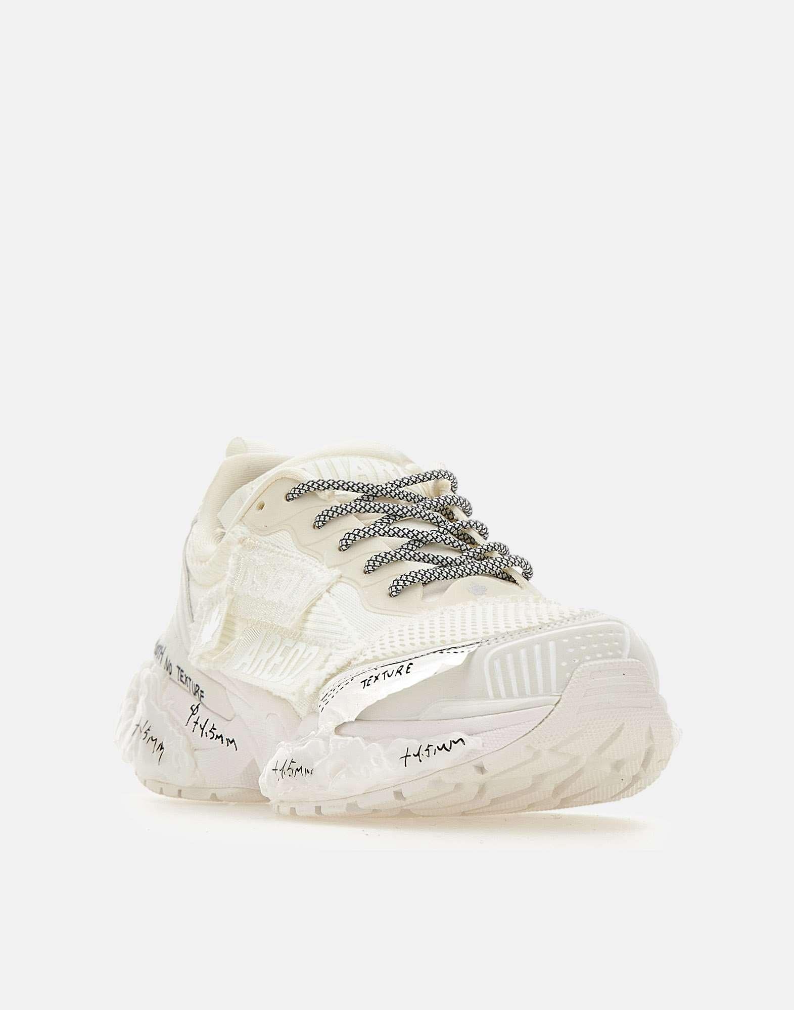 DSquared2 men's sneakers "Faster" crafted from a white mix of knit, mesh and PU, designed for an urban look with a futuristic edge. The upper is detailed with utility-inspired patches and DIY-style scribbled lettering for bold character. Finished with trekking-style laces, a back pull loop, and DSquared2 patches on the side and tongue. Set on a deconstructed running sole measuring 6 cm, for a dynamic, modern attitude. Dust bag included.