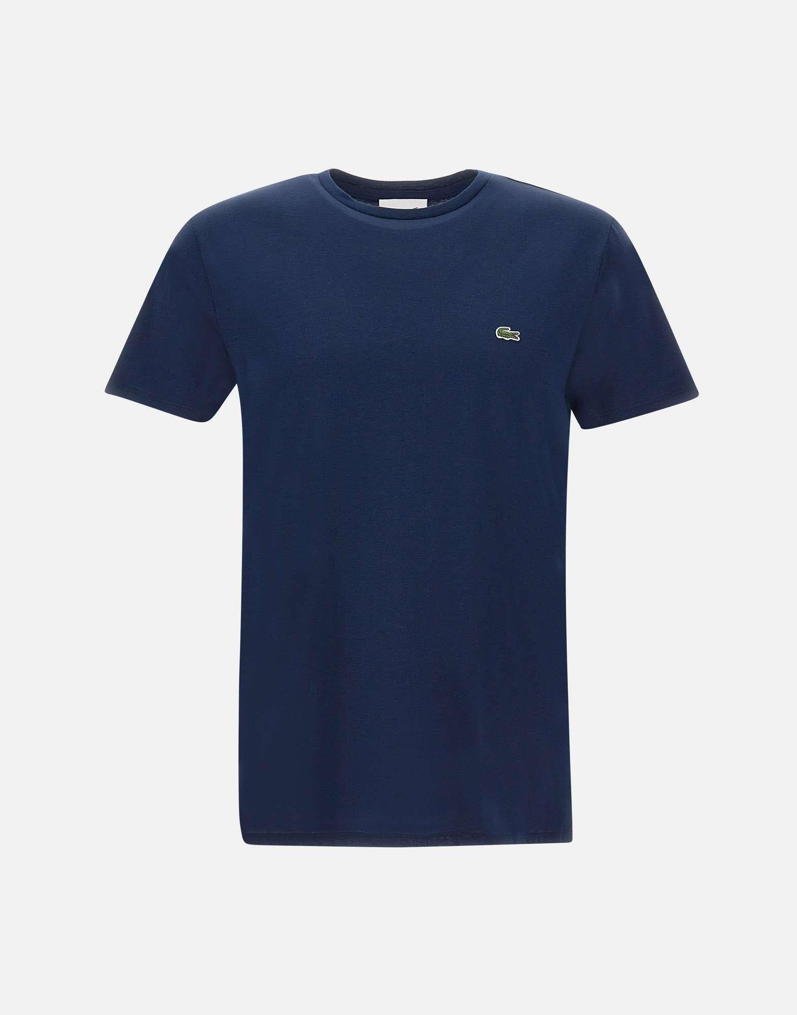 Lacoste men's cotton t-shirt, navy blue, round neck, short sleeves, iconic logo patch on chest, regular fit.