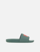 Ciabatte uomo "Timein" Hugo, colore verde abete, maxi logo frontale sulla tomaia a contrasto di colore,suola effetto marmorizzato, calzata regolare, made in Italy.