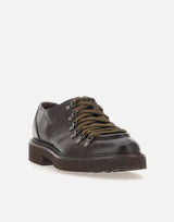 Stringate Doucal's "Triumph" coniugano artigianalità italiana e design contemporaneo. Realizzati in pelle testa di moro presentano chiusura con lacci e occhielli in metallo fumè, punta arrotondata, impunture a vista. La suola carrarmato in gomma tono su tono garantisce grip e resistenza. Tacco 4cm. Custodia in tessuto inclusa. Made in Italy. Calzata regolare. Lacci di ricambio inclusi