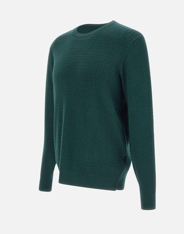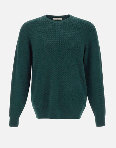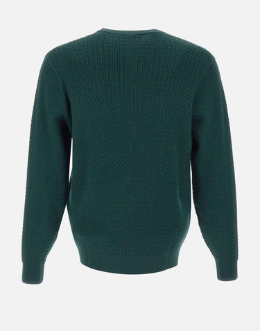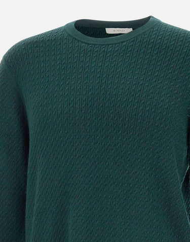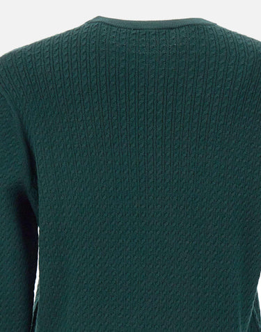 Men's Diktat sweater in a soft cashmere and viscose blend, forest green, with a crew neck and long sleeves. The cable knit adds texture and character, while the ribbed edges on the collar, cuffs, and hem ensure a regular and comfortable fit. Perfect for a casual-chic look in the colder seasons.