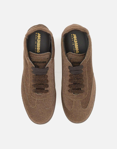 Mens Soldini 80 "Akira Donald" sneakers in soft tobacco suede. Featuring removable leather-lined insole and ultra-light 3cm rubber sole for all-day comfort. A versatile design, ideal for both work and casual wear. Includes interchangeable double laces to customize the style. Expertly crafted in Italy. True to size fit. Fabric case included