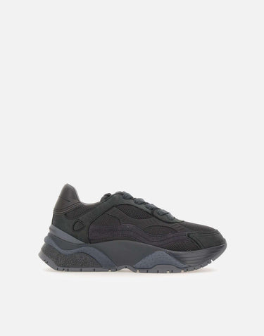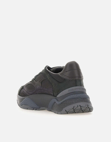Philippe Model Paris "Odeon" women's sneakers in anthracite, featuring a contemporary design and bold style, inspired by urban world. The upper is made of leather and mesh. Matching flat laces. Dynamic, marble-effect platform sole, 6 cm high. Removable padded insole, breathable cotton terry lining. Protective case included. Handcrafted in Italy. Regular fit.