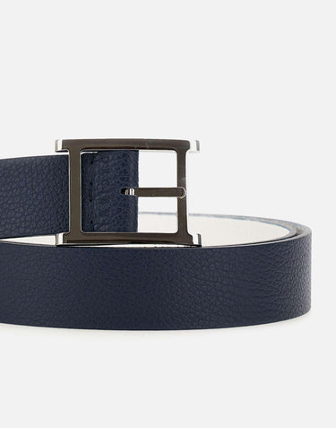 Orciani "Micron Double" men's hammered effect leather belt, blue and white, buckle with palladium finish, made in Italy, width 3.5 cm, length 115 cm.