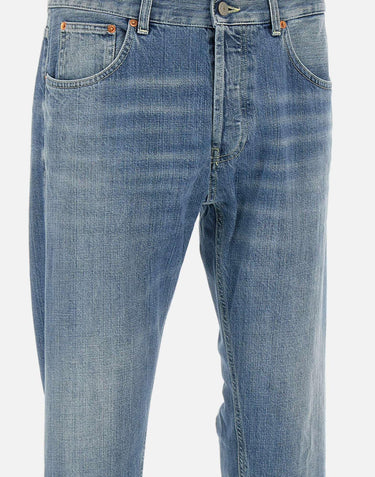 Dondup "Dian" jeans in stretch denim. The slim-fit carrot cut is ideal for those seeking a modern and versatile look, with excellent adaptability to body shape. The low waist with belt loops offers a perfect fit, while lightened blue wash gives a sporty yet casual look. Five-pocket styling and Dondup logo on back, a classy detail that won't go unnoticed. With a 76 cm inseam (size 34) and a 17 cm hem, these jeans are ideal choice for those seeking a model that combines comfort and practicality. Made in Italy