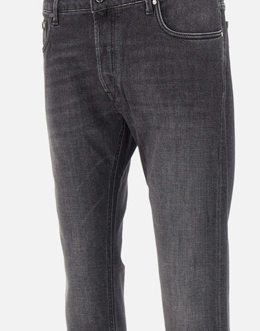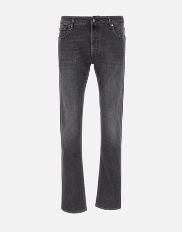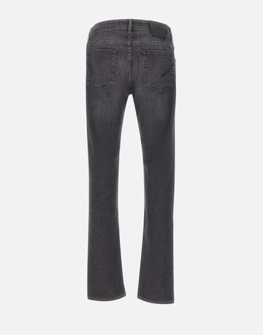 Handpicked "Ravello" jeans in black denim dyed with premium natural indigo, crafted from stretch cotton for enhanced comfort. Featuring five-pocket construction, embroidered mini logo on watch pocket, leather back patch, and button fly with signature logo button. 17 cm hem and 86 cm inseam (size 34). Slim fit. Made in Italy.