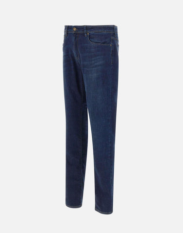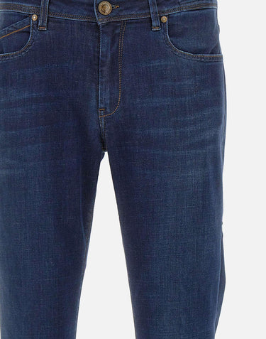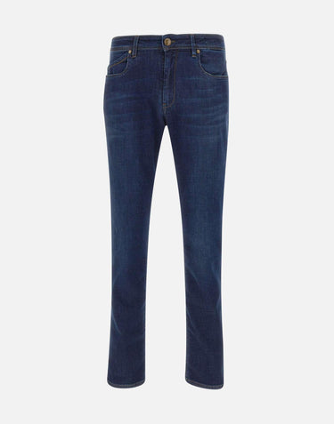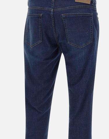 Re-Hash "Rubens Z" men's , blue, Tencel denim jeans, super comfortable to touch and to wear, zip and logo button fastening, five pockets, contrasting stitching, suede logo patch on back, 17cm hem, made in Italy, slim fit