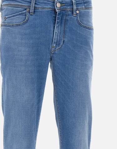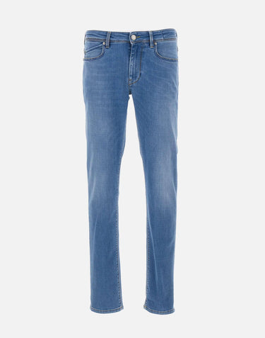 Re-Hash men's jeans "Rubens-Z," light denim blue, five-pocket model, medium-low waist, silver logo button and zipper closure, waistband with belt loops, leather-colored logo patch on back, slim fit. Made in Italy.