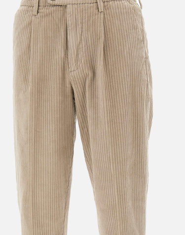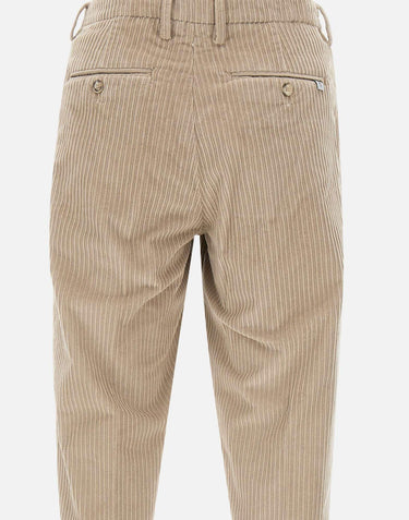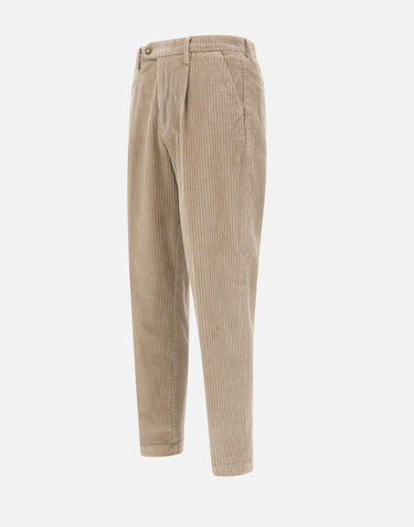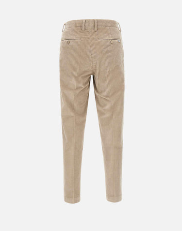 Re-Hash "Marc" trousers, crafted from beige stretch corduroy. The chino style features front darts, side pockets, and back pockets with buttons, as well as a zip and button closure and belt loops. The 17 cm hem and slim fit lend the garment a refined and contemporary elegance, ideal for casual-chic looks. Made in Italy.