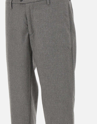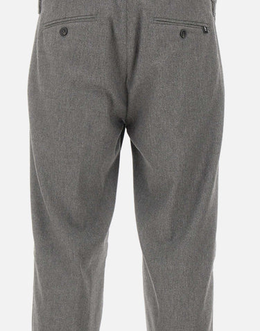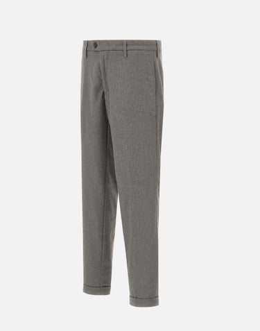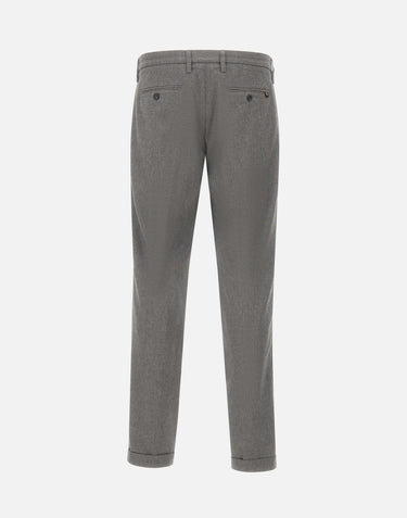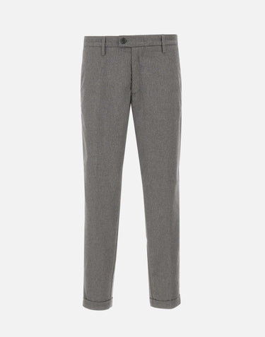 The "Mucha10G" trousers by Re-Hash embody essence of modern Italian tailoring. Crafted from a refined wool and stretch viscose blend, they guarantee comfort and freedom of movement without sacrificing elegance. Available in a subtle gray, they're ideal for business or formal looks with a contemporary cut. The design features a zip, hook, and button closure, side welt pockets, buttoned back pockets, and a 17 cm hem with a 3 cm cuff, for a distinctive tailored detail. The slim fit flatters the figure without constraints. Entirely made in Italy, they're an essential piece for any quality men's wardrobe.