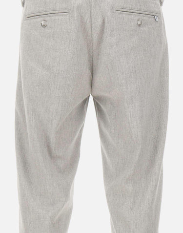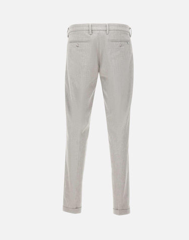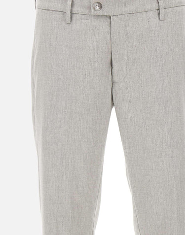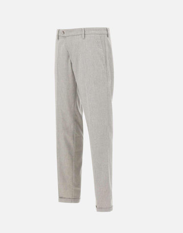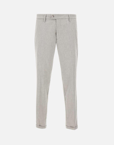 Re-Hash "Mucha10g" trousers in ice gray, crafted from a stretch wool and viscose blend for natural comfort and an impeccable fit. The style features a zip, hook, and button closure, side welt pockets, back buttoned pockets, and belt loops. The 17 cm hem with a 3 cm turn-up completes tailored design. Slim fit, perfect for elegant and contemporary looks. Made in Italy.