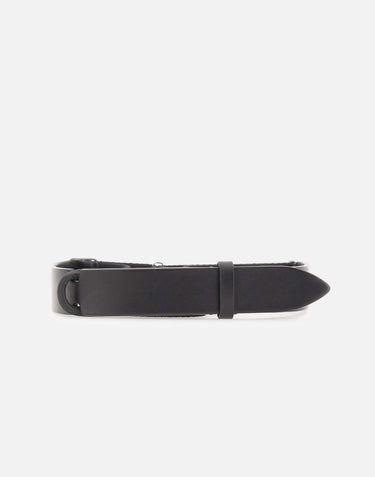 Orciani "Nobuckle bul" belt, black, in leather with a fabric backing, featuring a simple and modern design without a buckle. Featuring a sliding ring with a matte nickel-free finish, it is one size fits all, adjustable from size 42 to 56, ideal for a variety of wearability. 3 cm wide, expertly crafted. A versatile and refined accessory, perfect for casual or formal looks. Made in Italy.