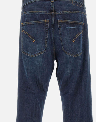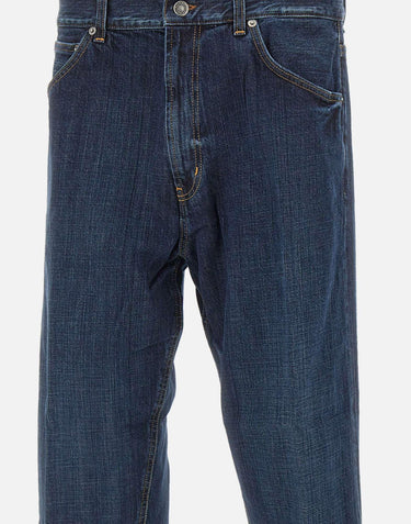 Dondup "Paco" jeans in recycled fixed denim designed for those seeking a distinctive and modern look. Crafted from 12 3/4 oz dark blue denim, these five-pocket jeans offer a loose fit that ensures comfort and a relaxed fit. The regular waist with belt loops allows you to adjust the garment to your shape. Zip and button closure and exposed stitching. The dark vintage wash creates a worn-in effect, making them perfect for a streetstyle look. The embroidered Dondup logo on the back adds a classy and recognizable detail.