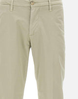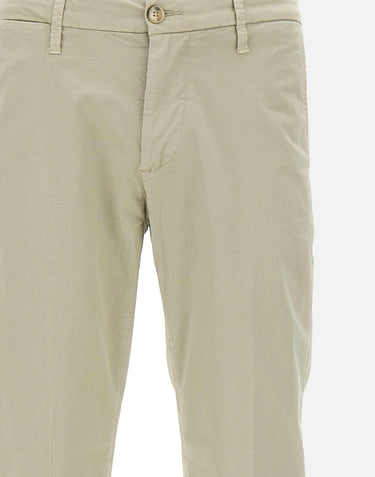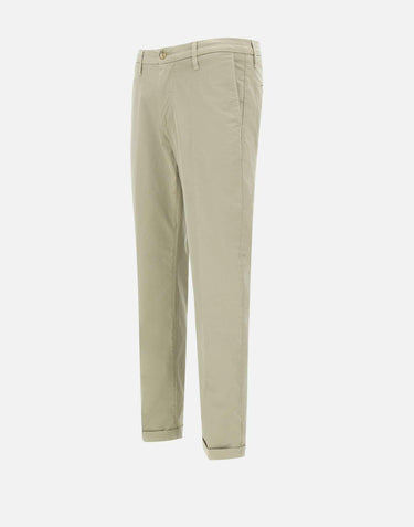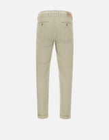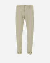 Re-Hash "Mucha chinos" men's stretch cotton trousers, ecru color, comfortable fabric to touch and to wear, zip and button fastening, side welt pockets, regular waist with belt loops, front watch pocket, back pockets with button, logo patch on back suede, 17cm leg bottom and 2.5cm turn-up, slim fit, made in Italy.