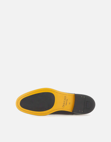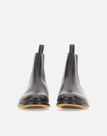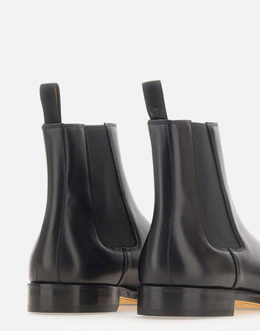 Mens Doucal's "Shade" boots in black leather, featuring a rounded toe, ankle-high design, and side elastic inserts for a comfortable slip-on fit. Detailed with a rear pull tab, leather and rubber sole, and a 2 cm heel for stability. With a regular fit and Made in Italy craftsmanship, they embody timeless elegance and superior quality. Dust bag included.