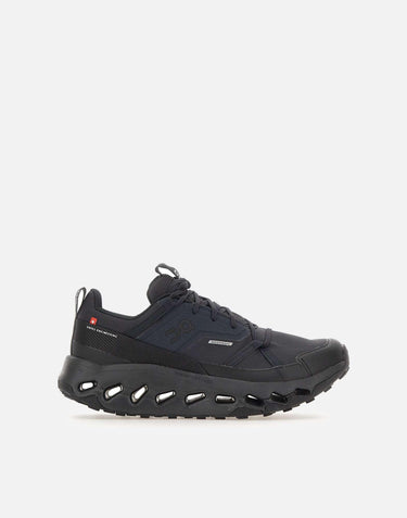 On "Cloudhorizon WP" sneakers in black, weighing 244 g, designed for trekking and engineered with CloudTec Phase technology to ensure a smooth, cushioned transition. The Missiongrip rubber outsole ensures traction on dry and wet terrain, while Helion superfoam cushions every impact. The soft and flexible technical mesh upper offers lightweight comfort, maintaining stability and durability from heel to toe. 6 mm drop. Regular fit: size US 8 corresponds to EU/IT 39. Consult the ON WOMEN'S FOOTWEAR USA chart to find the perfect size.