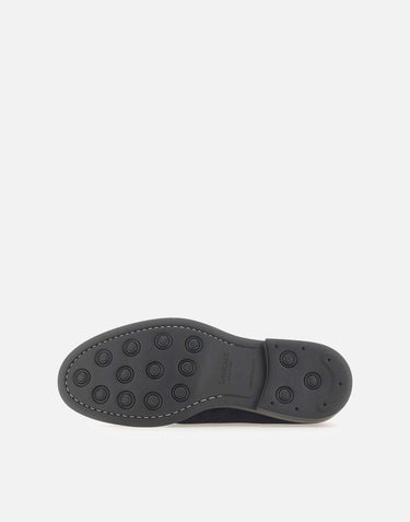 Doucals "Visone" lace-up shoes crafted from midnight blue suede leather, featuring a rounded toe and classic lace-up fastening. The rubber sole with a 2.5 cm heel ensures comfort and durability. A timeless and versatile style, ideal for both refined and casual outfits. True to size. Made in Italy. Protective dust bag included.