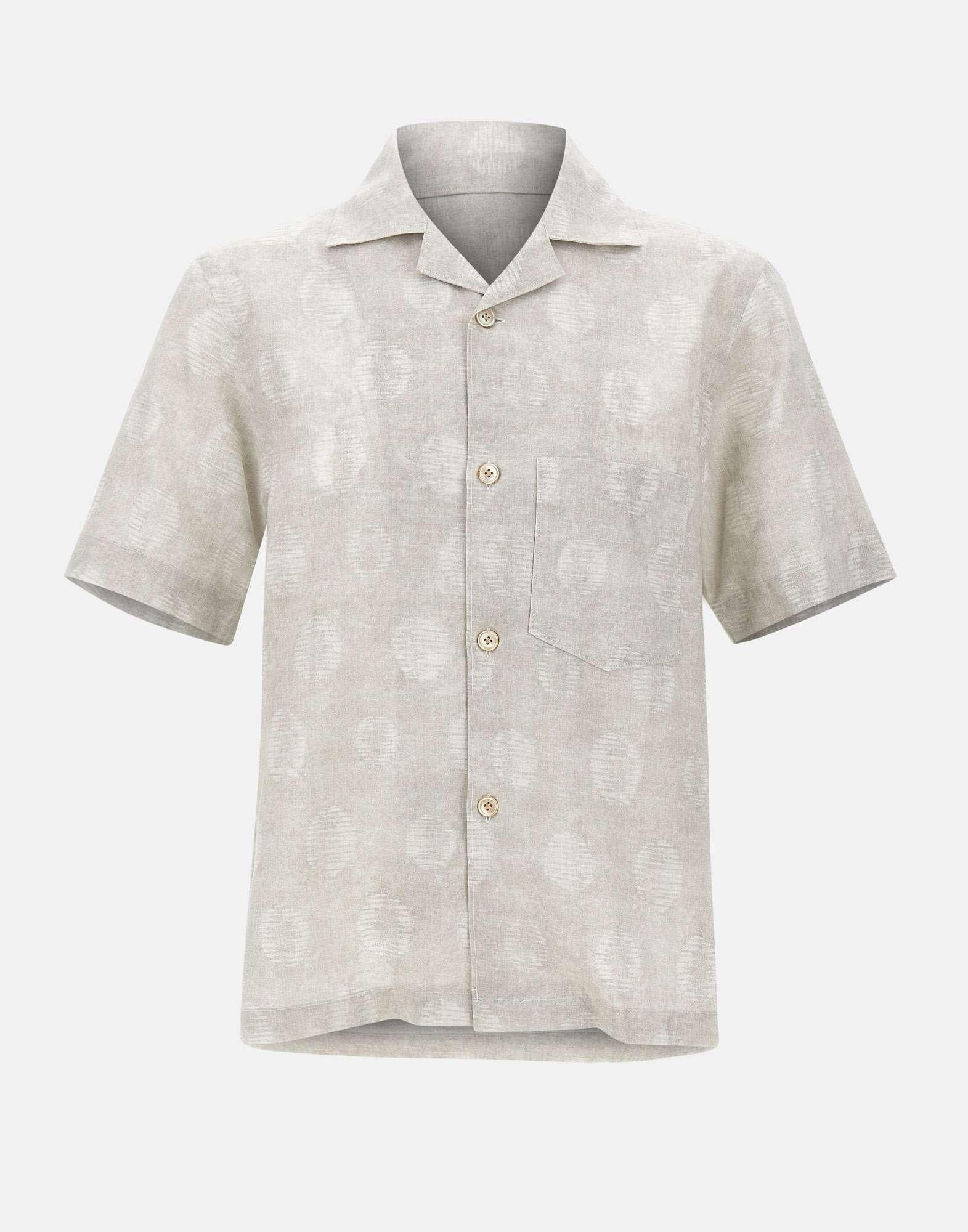Eleventy men's shirt crafted from white linen, defined by an essential and refined design created for the contemporary men's wardrobe. The style features a front closure with mother of pearl buttons, a classic collar and buttoned cuffs that shape a clean and elegant silhouette. The rounded hem completes the garment with a functional and versatile detail, also ideal for a more relaxed way of wearing it. The regular fit ensures comfort and natural ease, making this shirt perfect for polished and sophisticated summer looks. Made in Italy.